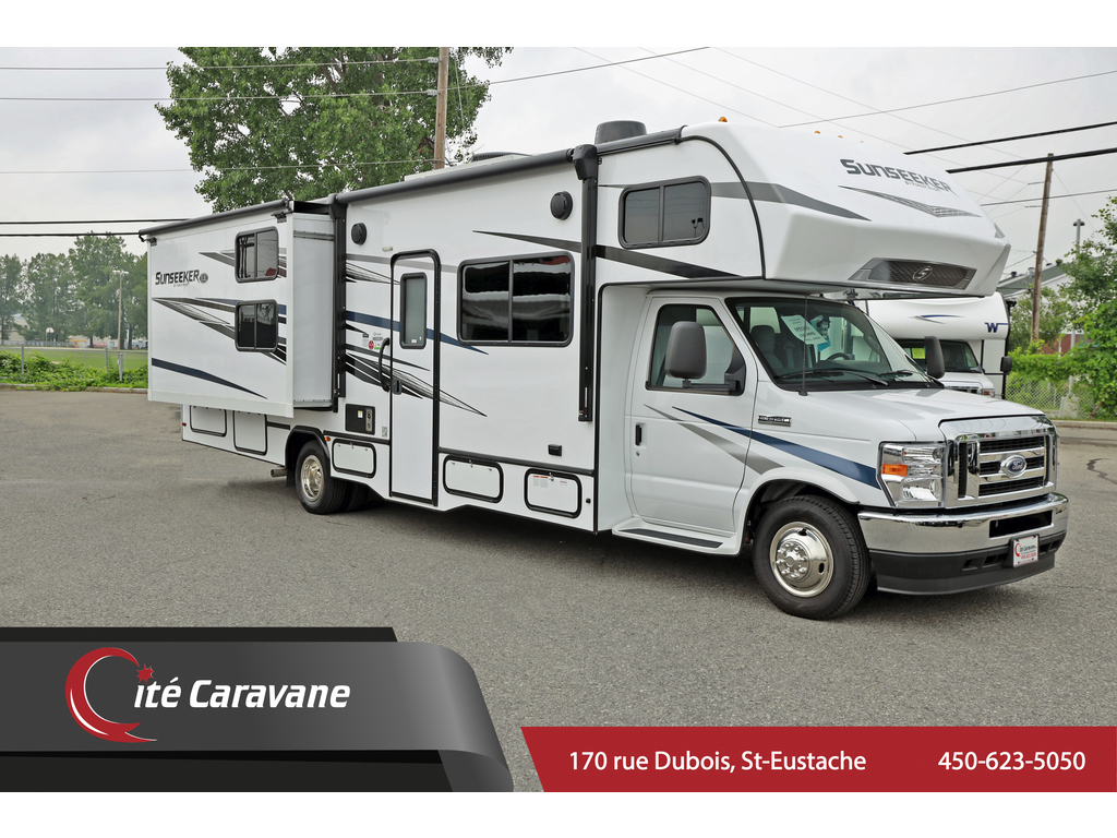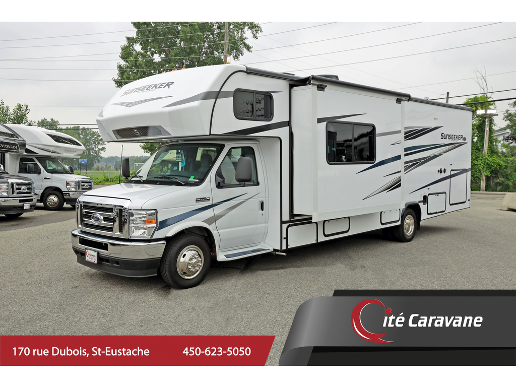 Forest River Sunseeker 3250 2 extensions CLASSE C avec lits superposé Tissu : Slate, boiseries : Vermont oak : Ford V-18, Prise 30AMP , chauffe-eau 6 gallons , chauffage 30,000BTU , A/C au toit 13.5BTU canalisé , murs de 2, fini gel-coat , toit en fibre de verre , auvent électrique , hitch de 7500lbs,TV , frigidaire 10 pieds cube , tiroirs styles résidentiels , cuisinière a trois bruleur , TV, stores de nuit , plafond de 7 pieds , génératrice de 4000watts onan , micro-onde , sièges avant en tissue , couvert en fibre de verre , matelas queen , Prélart a grandeur Beauflor , antenne digitale, comptoirs de luxe , camera de recule . www.citecaravane.com 450-623-5050 170 RUE DUBOIS , ST-EUSTACHE, SUR LE BORD DE LA 640! UNE ENTREPRISE FAMILIALE A VOTRE SERVICE DEPUIS 1973 ! , DÉPOSITAIRE NUMÉRO 1 FOREST RIVER SUNSEEKER ! LE SPÉCIALISTE DU VR AU QUÉBEC Forest River Sunseeker 3250 2 slides CLASS C with bunk beds , fabric : Slate, wood : Vermont Oak, Ford V-8 , 30AMP , 6 gallon water heater , 30,000BTU heater , 13.5BTU ducted roof A/C , , 2inch thick walls , gel-coat exterior , fiberglass roof , electric awning , 7500lbs hitch , TV , 10 cubic feet fridge , residential style drawers , 3 range burner , micro-wave , night shades , 7 feet high ceilings , 4000watts Onan generator, , cloth front seats ,wood refrigerator panels ,fiberglass front cap , queen matress , Beauflor linoleum throughout , Digital Antenna ,Upgraded countertops , back up camera . www.citecaravane.com 450-623-5050 ! CALL US TODAY ! Cité Caravane, 170 rue Dubois in Saint-Eustache, adjacent to the 640 highway. A FAMILY OWNED BUISNESS SINCE 1973 ! QUÉBEC s RV SPECIALIST !