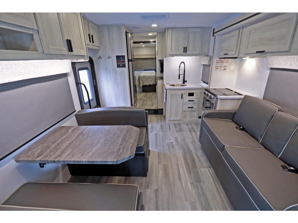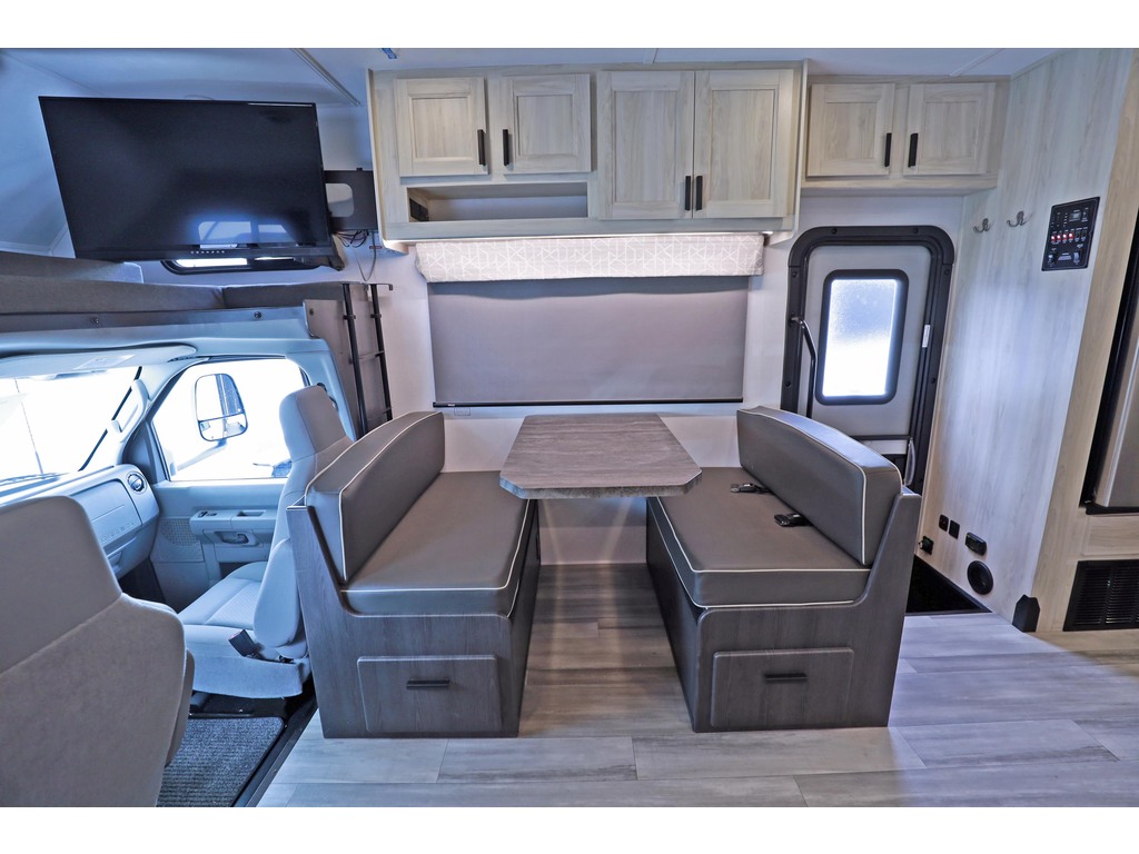 Disponible sur commande - Available on order Forest River Sunseeker 2500 3 extensions CLASSE C / B+ Skirt paint, Tissu : Slate , boiseries : Vermont o...