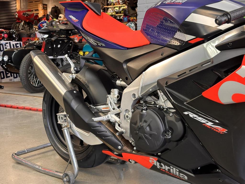 APRILIA RSV4 FACTORY   \*\*\* MOTO IMPECCABLE, BIEN ENTRETENUE PAR L'ANCIEN PROPRIÉTAIRE - PRIX RÉDUIT À 19895$\*\*\*   La Moto Super Sportive dérivé de la course par Aprilia. La réputation de la RSV4 n'est plus à faire grâce à son moteur unique V4 de 217hp. Désormais dotée de winglets intégrés, d'une efficacité aérodynamique améliorée, associés au châssis unique d'Aprilia, son nouveau bras oscillant et son package électronique complet, la Aprilia RSV4 est la reine de la catégorie sport. La version Factory pousse la RSV4 encore plus avec un équipement exclusif comme les roues forgées pour un poid suspendu réduit et surtout la suspension Électronique Semi-Active par Olhins.   - Moteur V4 de 1099cc devellopant 217hp  - Suspension Électronique Semi-Active Smart EC2.0 par Ohlins  - Roues forgées pour un poid réduit  - Freins Brembo Stylema avec Cornering ABS  - 6 modes de conduites, 3 pour la route, 3 pour la piste  - Traction Control ajustable en route (8 modes), Wheelie Control (3 modes), Frein Moteur ajustable, ABS ajustable  - Quickshift Up&Down  - Régulateur de vitesse (Cruise Control)  - Écran couleur TFT, Bluetooth ready.  - Groupe lumière avant au LED.   Cette unité est chez Goulet Moto Sports de Ste-Thérèse. Téléphonez au 450.435.2408   Possibilité de financement avec plusieurs institutions financières. 2ième chance au crédit disponible.   Goulet Moto Sports est votre concessionnaire moto depuis 1968. Fier représentant officiel des marques HONDA, APRILIA, MOTO GUZZI, VESPA, PIAGGIO, KTM, NIU, SURRON et URAL pour le grand Montréal. Nous avons un énorme choix de moto usagés inspectées par nos professionnels. 2 adresses pour vous servir, soit à Sainte-Thérèse (450.435.2408) et Saint-Jérôme (450.431.6622).   Goulet Moto Sports ne peut être tenu responsable d'une omission, d'un délai ou d'une erreur de transcription de l'information. Le prix affiché reflète la condition de l'unité. Pour différentes raisons les prix peuvent différer de ceux indiqués en ligne. Les données sont affichées à titre indicatif seulement et ne peuvent être considérées comme une information contractuelle. Nous vous encourageons vivement à nous consulter pour plus de détails avant de vous déplacer. Des frais tels que taxes, immatriculation, administrations ou autres peuvent s'appliquer.   Se compare à une Ducati Panigale V4, Honda CBR1000RR-R, Suzuki GSX1000R, Yamaha R1M, Kawasaki ZX-10RR  Essence, Transmission: Manuelle, 6 vitesses, Système de refroidissement: Refroidi au liquide, 4 cylindres, 217.0 CV, 1099.0 CC, Garantie: Balance de garantie du manufacturier  ----------------------  APRILIA RSV4 FACTORY   \*\*\* IMPECCABLE MOTORCYCLE, WELL MAINTAINED BY THE FORMER OWNER \*\*\*   The Moto Super Sportive derived from the race by Aprilia. The reputation of the RSV4 is second to none thanks to its unique 217hp V4 engine. Now featuring integrated winglets, improved aerodynamic efficiency, combined with Aprilia's unique chassis, new swingarm and full electronics package, the Aprilia RSV4 is queen of the sport class. The Factory version pushes the RSV4 even further with exclusive equipment such as forged wheels for reduced suspended weight and above all the Electronic Semi-Active suspension by Olhins.   - 1099cc V4 engine developing 217hp  - Smart EC2.0 Semi-Active Electronic Suspension by Ohlins  - Forged wheels for reduced weight  - Brembo Stylema brakes with Cornering ABS  - 6 driving modes, 3 for the road, 3 for the track  - Traction Control adjustable on the road (8 modes), Wheelie Control (3 modes), Adjustable Engine Brake, Adjustable ABS  - Quickshift Up&Down  - Cruise control (Cruise Control)  - TFT color display, Bluetooth ready.  - LED front light group.   This unit is at Goulet Moto Sports in Ste-Thérèse. Call 450.435.2408   Possibility of financing with several financial institutions. 2nd chance credit available.   Goulet Moto Sports has been your motorcycle dealer since 1968. Proud official representative of the HONDA, APRILIA, MOTO GUZZI, VESPA, PIAGGIO, KTM, NIU, SURRON and URAL brands for greater Montreal. We have a huge selection of used motorcycles inspected by our professionals. 2 addresses to serve you, in Sainte-Thérèse (450.435.2408) and Saint-Jérôme (450.431.6622).   Goulet Moto Sports cannot be held responsible for any omission, delay or transcription error in the information. The displayed price reflects the condition of the unit. For various reasons the prices may differ from those indicated online. The data is displayed for information purposes only and cannot be considered as contractual information. We strongly encourage you to consult us for more details before you travel. Charges such as taxes, registration, administration or others may apply.   Compares to a Ducati Panigale V4, Honda CBR1000RR-R, Suzuki GSX1000R, Yamaha R1M, Kawasaki ZX-10RR  Gasoline, Transmission: Manual, 6 speeds, Cooling System: Liquid cooling, 4 cylinders, 217.0 HP, 1099.0 CC, Warranty: Balance de garantie du manufacturier