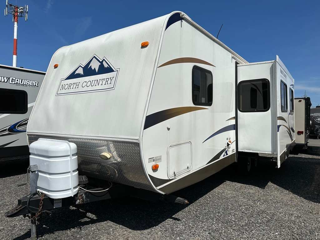 Heartland BRICOLEUR North Country261RBS 2011North Country 261RBS Longueur: 29'5 po Poids: 6 151 lbs. Cette unité peut accueillir jusqu'à 4 personnes au coucher, car elle possède un lit Queen et un canapé-lit. La cuisine est complète, cuisinière 3 brûleurs, fourneau, hotte et micro-onde. Salle de bain avec douche, baignoire, toilette et vanité. Extérieur en aluminum avec auvent rétractable électrique de 15', réservoir d'eau fraîche de 47 gal., d'eaux usées de 70 gal. *** Prendre note que les photos et les options décrites peuvent différées *** Toute l'équipe de Centre du VR est fière de vous présenter le plus vaste inventaire de véhicules récréatifs neufs et d'occasions à vendre au Québec. Vous y trouverez notamment les marques Columbus, Rockwood, Impression, Kodiak, Coleman, Cruiser RV, Flagstaff, E-Pro, Springdale, Sunset Trail, Cougar, Chaparral, Bontrager Outdoors, motorisés Axis, Hurricane, Outlaw, Coachmen Cross Trail, Prism, Echelon, Fleetwood, Four winds, Compass, Beyond, Nova et Pixel. Remorques N&N, Apogée et Armorteck sont aussi disponibles. En inventaire pour vous, la série de génératrices Ducar. Vous avez un coup de coeur ? Envoyez-nous une demande d'information. Financement sur place. N'oubliez pas également que rien ne vaut une visite du modèle qui vous intéresse pour vous aider à prendre une décision éclairée. Passez donc nous voir afin de jeter un coup d'oeil plus détaillé à nos caravanes et caravanes à sellettes neuves.