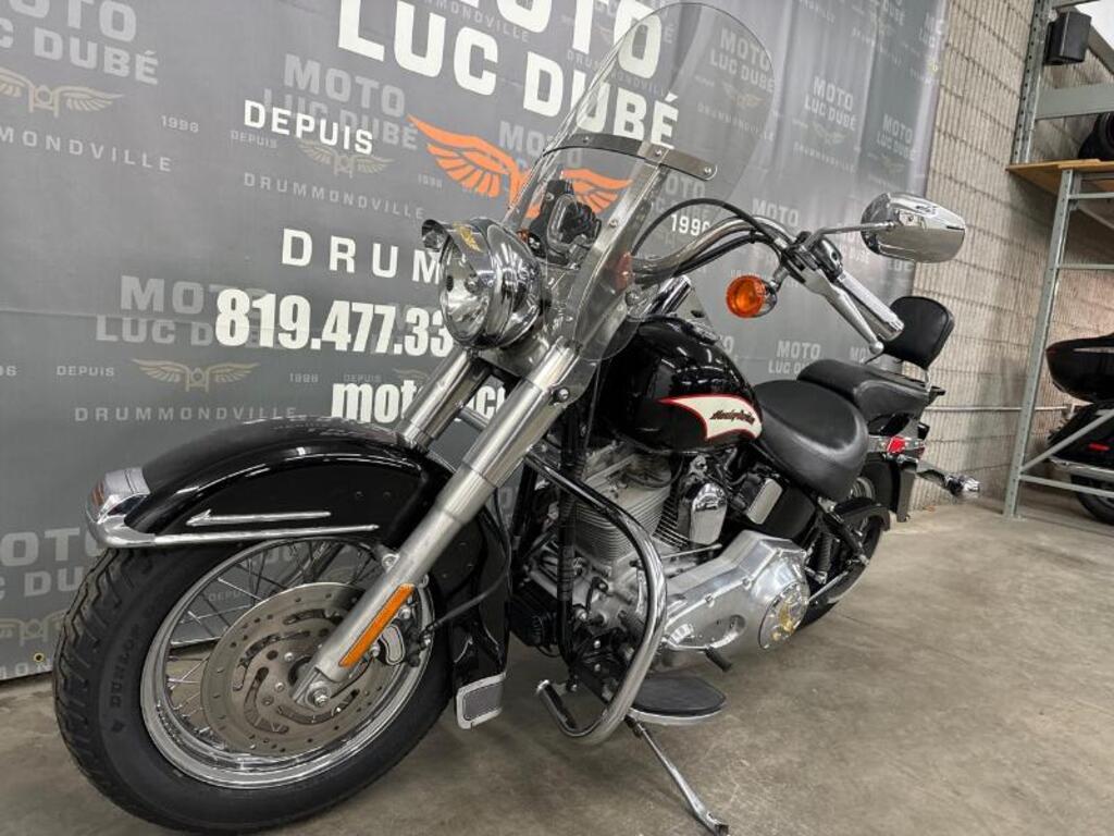Harley-Davidson FLST Heritage Softail 2006 70 491 KM, PARE-BRISE, DOSSIER, PORTE-BAGAGES, PROTÈGE-MOTEUR, Financement disponible à taux compétitifs. Programme de rétablissement de crédit : 2e et 3e chance au crédit. * We speak English as well * Moto Luc Dubé, une entreprise familiale à votre service depuis maintenant 30 ans. Situé à Drummondville, au carrefour des autoroutes 20 et 55, à mi-chemin entre Montréal, Québec, Trois-Rivières et Sherbrooke.