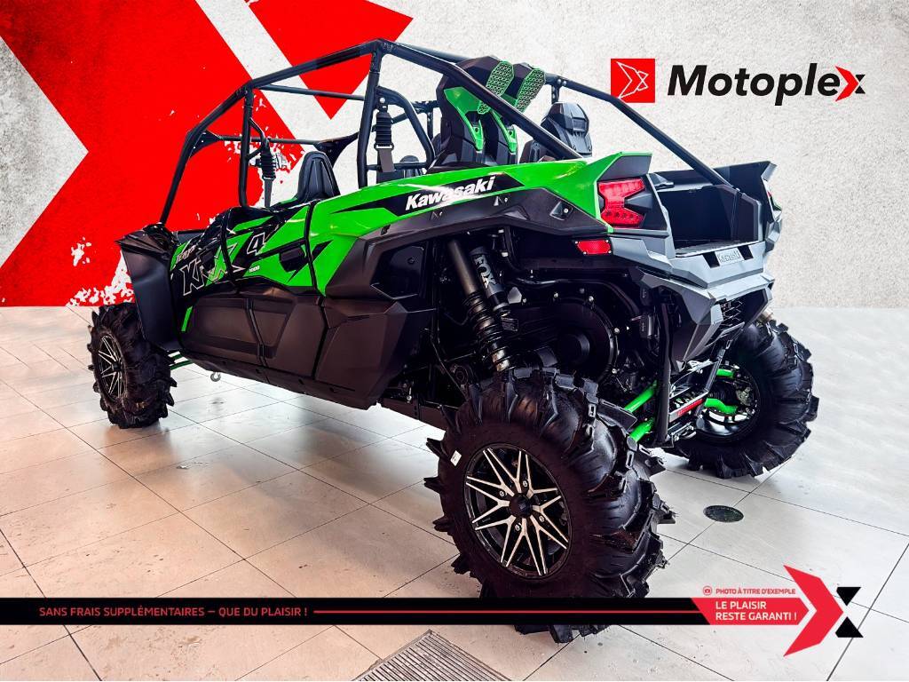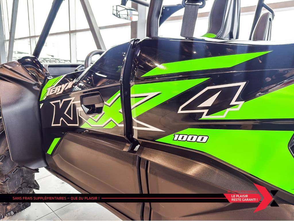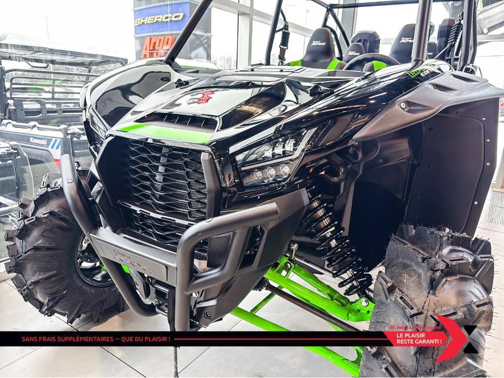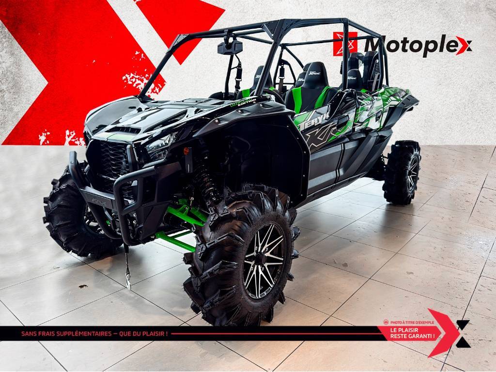 TERYX KRX4 1000 Lifted Edition Partagez l’aventure avec plus d’amis et de membres de votre famille avec de l’espace pour quatre passagers. Avec un cadre allongé, recevez des passagers additionnels sans compromis. La technologie de suspension électronique de pointe agencée aux roues et pneus robustes offre l’expérience de conduite ultime. Le véhicule côte à côte Teryx KRX4 1000 élève et renforce la réputation des véhicules côte à côte sport Kawasaki. La marque japonaise Kawasaki, largement connue pour ses motos et motomarines à performance inégalée, offre aussi des VTT et côtes-à -côtes tout aussi intéressants. motos et vtts non disponible a la succursale de St-Eustache GARANTIE PROLONGÉE jusqu'à 4 ans disponible et plan d’entretien Financement approuvé — 1re, 2e et 3e chance au crédit! Testez-nous et trouvez la meilleure solution, au meilleur taux. Votre incontournable du financement ! PLEASE DON'T HESITATE TO CONTACT US, WE SPEAK ENGLISH AS WELL ! Nous prenons tout véhicule d’échange Prix Garanti. AUCUN FRAIS CACHÉS, prix affiché valide sur financement ou paiement comptant. *(taxe en sus) We speak English contact us. LIVRAISON PARTOUT AU Québec Mentions légales au financement, consultez notre site Internet. GARANTIE PROLONGÉE jusqu'à 4 ans disponible et plan d’entretien disponible uniquement chez groupe motoplex