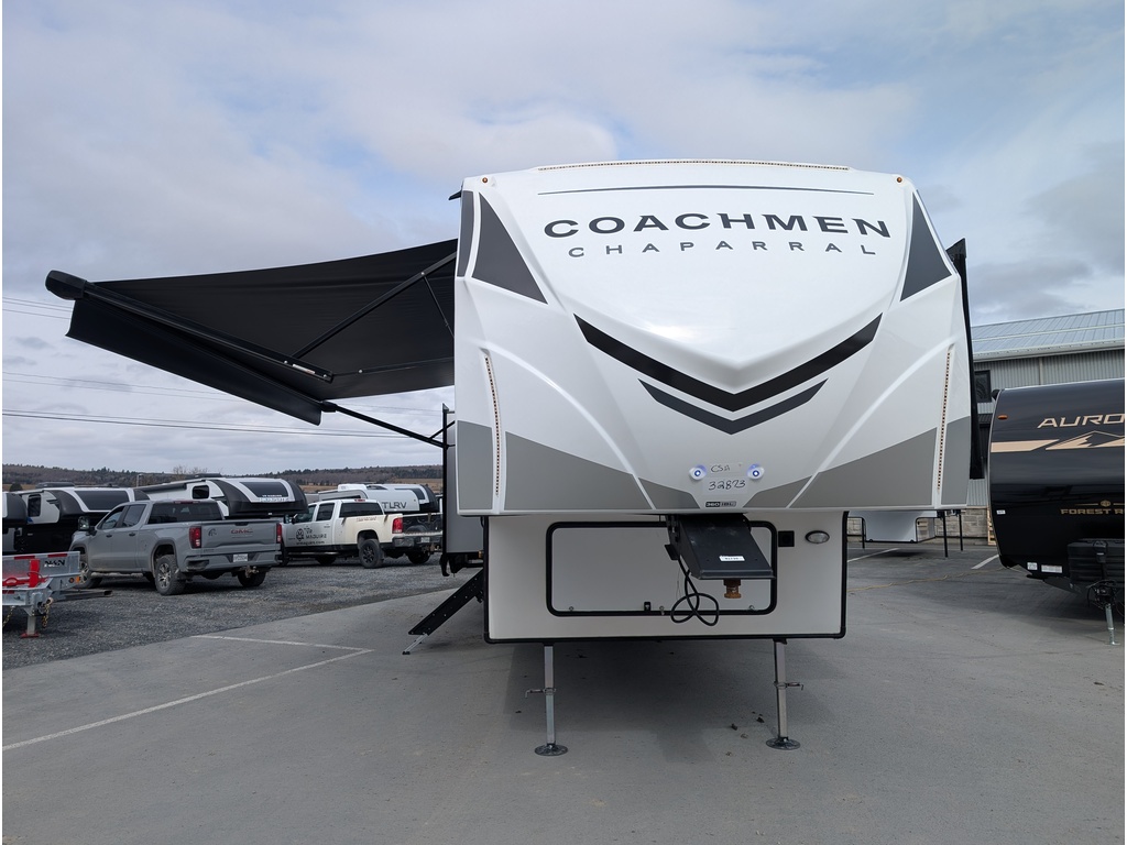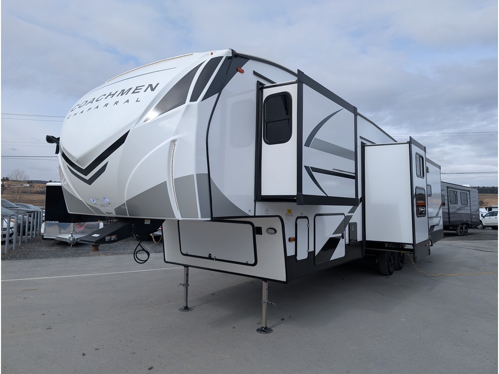 EN COMMANDE!! MAGNIFIQUE CHAPARRAL 360IBL 2026, 4 EXTENSIONS, POIDS DE SEULEMENT 11 350 LBS, LONGUEUR DE PLANCHER DE 36 PIEDS, LONGUEUR HORS TOUT DE 39'9'', GRANDE AUVENT ÉLECTRIQUE, PANNEAU SOLAIRE, ÉCHELLE ARRIÈRE, POUVANT RECEVOIR JUSQU'À 8 PERSONNES POUR COUCHER, INTÉRIEUR TRÈS SPACIEUX ET LUXUEUX, GRANDE CUISINE, ILÔT CENTRALE, FOYER DE LUXE, TV, TABLE AVEC CHAISES, DIVAN/FAUTEUILS DOUBLES, 2IÈM DIVAN/FAUTEUIL TRIPLE DE 72X67, CHAMBRE DES MAÎTRES À L'AVANT AVEC GRAND LIT DE 80'' X 60'', GRANDE CHAMBRE FERMÉ À LENTRÉE AVEC BUNK BED DOUBLES DE 64X48, ESPACE PRÊT POUR LAVEUSE SÉCHEUSE, ESPACES DE RANGEMENT RENDANT L'HABITACLE TRÈS FONCTIONNEL TOUT EN GARDANT LES COMMODITÉS SUIVANTES, GRAND FRIGO FONCTIONNANT AU 12 VOLTS, FOUR/POÊLE À 3 BRÛLEURS AVEC HOTTE, MICRO-ONDES, 2 AIRS CLIMATISÉS, CHAUFFAGE, CHAUFFE-EAU. À VOIR ABSOLUMENT COUP DE COEUR ASSURÉ! LA PLUS BELLE FIFTH WHEEL DU MARCHÉ! ROULOTTE VENDU INSPECTÉE ET GARANTIE. PASSEZ NOUS VOIR AU 174 ROUTE DU PRÉSIDENT KENNEDY, BEAUCEVILLE, G5X 1P4, À SEULEMENT 40 MINUTES DES PONTS DE QUÉBEC. LIVRAISON DISPONIBLE PARTOUT AU QUÉBEC! PROFITEZ DE NOTRE FINANCEMENT FACILE ET RAPIDE SUR PLACE. POUR PLUS D'INFOS, SANS FRAIS 1-888-799-0874, BUREAU 418-774-5066, CELL OU MESSAGE TEXTE KEVIN 418-386-0025 AU PLAISIR DE VOUS SERVIR ET À BIENTÔT! TOUJOURS LES MEILLEURS PRIX DU MARCHÉ WWW.AUTOMAGUIRE.COM *** NOUVEAUTÉS CHAQUE SEMAINE ***