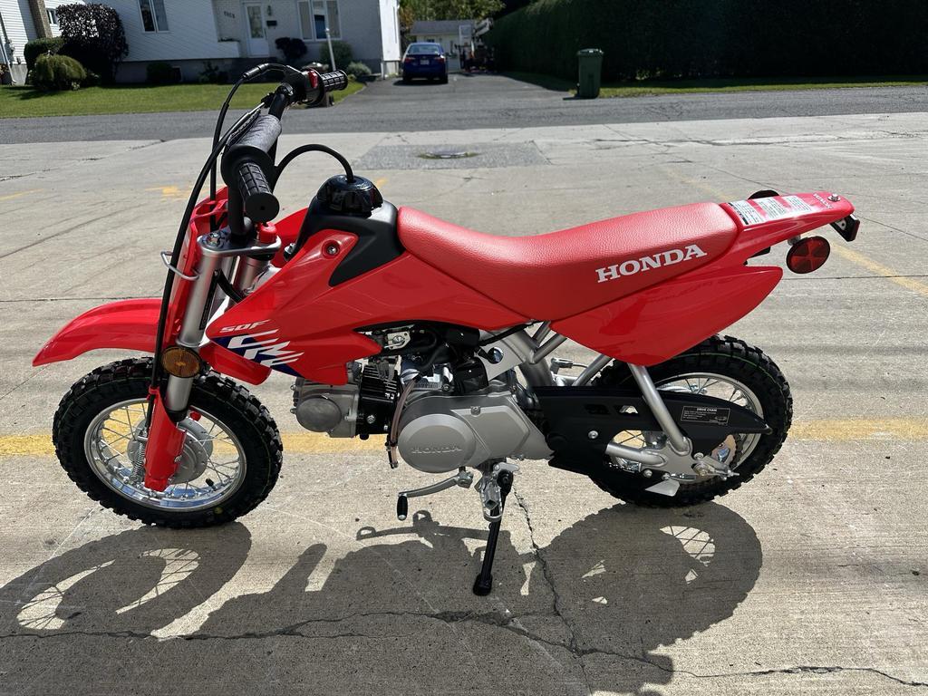 Honda CRF50F 2025 chez Moto Sport 100 Limites à Drummondville Le début de l'aventure   La Honda CRF50F 2025 est la minimoto idéale pour les jeunes motocyclistes en herbe. Facile à démarrer, simple à utiliser, et toujours aussi amusante, la CRF50F est conçue pour offrir une expérience de conduite sûre et excitante dès les premiers tours de roue. Grâce à sa conception légère, sa selle basse et ses leviers adaptés aux petites mains, cette moto est le choix parfait pour initier les jeunes au monde de la moto. Son allure inspirée des motos de course et ses nouveaux éléments graphiques en font un modèle qui ne manquera pas de faire sourire les petits pilotes.   Caractéristiques principales :   Moteur durable à 49 cm³ : Le moteur à quatre temps de la CRF50F est fiable, nécessitant peu d'entretien et offrant une expérience de conduite fluide pour les débutants.   Embrayage automatique : Pas de levier d'embrayage à manipuler, ce qui permet aux jeunes conducteurs de se concentrer sur la conduite et l'apprentissage des changements de vitesse sans risque de calage.   Boîte de vitesses à trois rapports : La transmission facile à utiliser permet une progression en douceur pour que les nouveaux pilotes puissent apprendre à changer de vitesse sans difficulté.   Limiteur de la commande des gaz réglable : Un commutateur qui limite la vitesse maximale, offrant aux parents un contrôle total pour s'assurer que les jeunes conducteurs ne roulent pas trop vite.   Fourche inversée : Conçue pour offrir une conduite confortable et un meilleur contrôle, idéale pour les sentiers ou le terrain de jeu.   Conception adaptée aux jeunes motocyclistes :   Selle basse et confortable : Permet une montée et descente faciles, tout en offrant une position de conduite stable pour les pilotes débutants.   Cadre robuste en acier : Conçu pour résister aux chocs et aux vibrations des premières aventures hors route. Le cadre assure une grande durabilité tout en restant léger pour faciliter la conduite des plus jeunes.   Commutateur d'allumage à clé : Permet aux parents de verrouiller l'allumage, assurant ainsi que l'apprenti pilote ne parte pas sans supervision.   La Honda CRF50F 2025 est la minimoto par excellence pour les jeunes aventuriers. Elle offre une expérience de conduite sécuritaire et excitante tout en garantissant la qualité et la fiabilité légendaires de Honda. Si vous êtes prêt à voir vos enfants prendre la route en toute confiance, la CRF50F est le choix parfait.   Disponible chez Moto Sport 100 Limites à Drummondville. Appelez-nous au (819) 445-6686 !