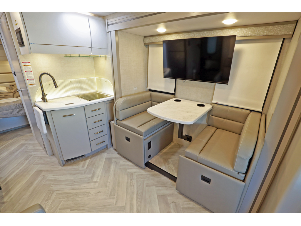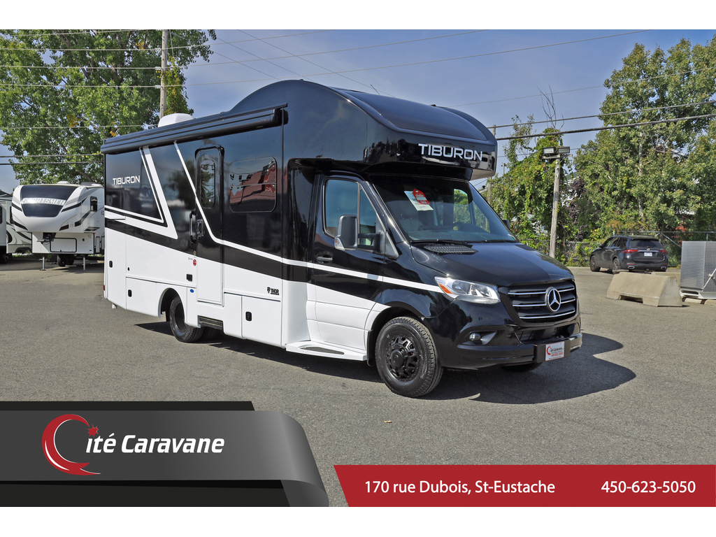 Thor Motor Coach Tiburon Mercedes Diesel Sprinter modèle 24RW. + crics hydraulics Ce véhicule récréatif de luxe mesure environ 24 pieds 9 pouces de longueur et roule sur le châssis Mercedes Benz Sprinter , un chauffe-eau sans réservoir, un groupe électrogène Onan et les armoires ultra-hautes de gamme de TMC qui distinguent cet autocar de la concurrence! L'équipement en option comprend le magnifique extérieur peint pour tout le corps, la sangle de sécurité pour enfant unique et AC sur le toit . Le tout nouveau Tiburon Sprinter comprend également un attelage de 5000 lb, un capuchon avant en fibre de verre avec puits de lumière, un auvent de terrasse électrique sans bras avec éclairage à DEL intégré, des fenêtres sans cadre, une radio de tableau de bord multimédia avec Bluetooth, des rétroviseurs extérieurs chauffants et à distance, un système de secours, un pivot chaises capitaines, guides de tiroirs à roulement à billes métalliques pleine extension, Rapid Camp +, réservoirs de rétention avec coussin chauffant et bien plus www.citecaravane.com 450-623-5050 170 rue dubois st-eustache J7P 4W9 Thor Motor Coach Tiburon Mercedes Diesel Sprinter Model 24RW. + hyraulic jacks This Luxury RV measures approximately 24 feet 9 inches in length and rides on the premier Mercedes Benz Sprinter chassis equipped , a Wet a tank-less water heater, an Onan generator and the ultra-high-line cabinetry from TMC that set this coach apart from the competition! Optional equipment includes the beautiful full-body paint exterior, single child safety tether & Roof A3C. The all new Tiburon Sprinter also features a 5,000 lb. hitch, fiberglass front cap with skylight, an armless power patio awning with integrated LED lighting, frameless windows, a multimedia dash radio with Bluetooth , heated & remote exterior mirrors, back up system, swivel captain s chairs, full extension metal ball-bearing drawer guides, Rapid Camp+, holding tanks with heat pads and much more www.citecaravane.com 450-623-5050 170 rue dubois st-eustache J7P 4W9