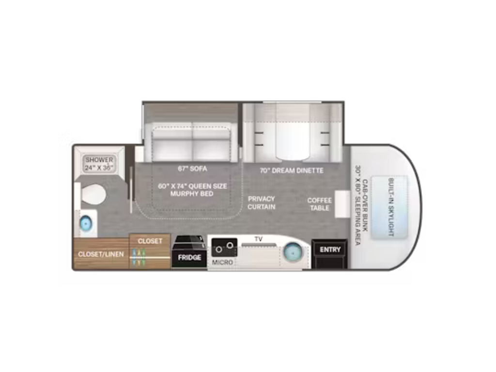 Disponible sur commande - Available on order Forest River Sunseeker 2500 3 extensions CLASSE C / B+ Skirt paint, Tissu : Slate , boiseries : Vermont o...