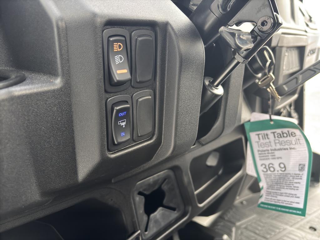 Polaris RANGER 1000 Premium 2025 Puissance et Confort pour Tous Vos Travaux   Découvrez le Polaris RANGER 1000 Premium 2025 chez Moto Sport 100 Limites à Drummondville. Conçu pour affronter les tâches les plus exigeantes, ce véhicule utilitaire tout-terrain combine puissance, robustesse et confort, idéal pour le travail et les loisirs en sentier.   Performance et Capacité de Travail   Moteur ProStar de 61 HP Une puissance optimisée pour un rendement exceptionnel.   Capacité de caisse de 453 kg (1 000 lb) Transportez plus d'équipement en toute facilité.   Capacité de remorquage de 1 134 kg (2 500 lb) Idéal pour les charges lourdes.      Confort et Ergonomie   Sièges moelleux et volant inclinable Conduite agréable, même lors de longues journées.   Rangement intégré en cabine Espace pratique pour ranger vos outils et effets personnels.   Nouveaux filets de cabine Faciles à manipuler d'une seule main pour une entrée et une sortie simplifiées.   Phares à DEL Une visibilité accrue pour travailler du matin au soir.      Durabilité et Sécurité   Châssis monobloc robuste Construit pour résister aux conditions difficiles.   Transmission Gen 2 Passage de vitesse plus fluide avec une réduction de l'effort de 50 %.   Plaque de protection intégrale Protection efficace contre les roches et débris.   Treuil Polaris HD de 2 041 kg (4 500 lb) Avec câble synthétique, arrêt automatique et télécommande sans fil.      Caractéristiques Spécifiques à la Version Premium   Direction assistée électrique (EPS) Conduite plus souple et précise.   Toit installé de série Protection accrue contre les intempéries.   Pneus PXT 2 de 66 cm (26 po) Adhérence et performance optimales.   Grand pare-chocs en acier Protection renforcée pour affronter tous les terrains.      Pourquoi Choisir Moto Sport 100 Limites à Drummondville ?   Concessionnaire officiel Polaris au Centre-du-Québec.   Service client personnalisé et conseils d'experts adaptés à vos besoins.   Large sélection de véhicules et accessoires pour optimiser votre expérience.   Venez découvrir le Polaris RANGER 1000 Premium 2025 chez Moto Sport 100 Limites à Drummondville !   Contactez-nous dès maintenant au (819) 445-6686 !