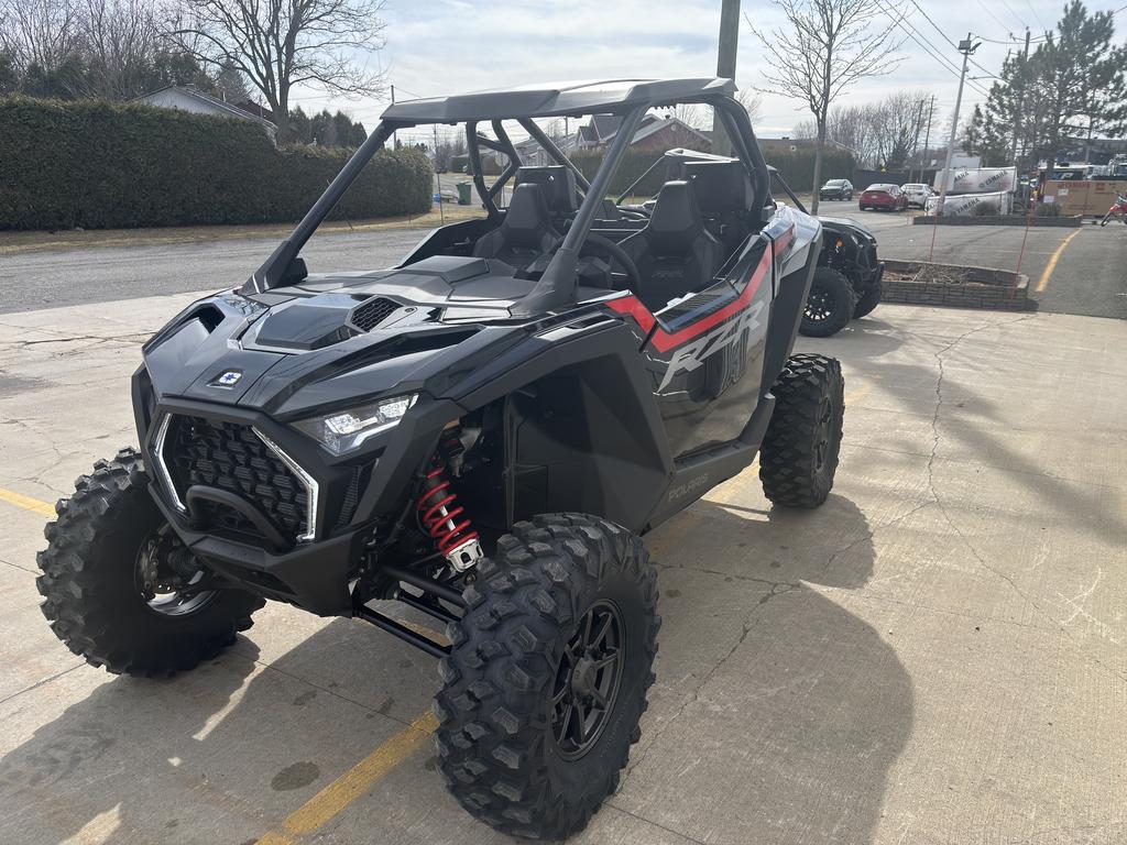 Polaris RZR Pro XP Ultimate 2025 Performance et Contrôle chez Moto Sport 100 Limites à Drummondville   Conçu pour dominer les sentiers les plus exigeants, le Polaris RZR Pro XP Ultimate 2025 est l'ultime côte-à -côte sport pour les passionnés de sensations fortes. Avec son moteur turbo de 181 chevaux, son empattement optimisé et sa suspension semi-active DYNAMIX 2.0, il offre une maniabilité exceptionnelle et un contrôle absolu sur tous les terrains.   Puissance et Performance   Moteur turbo de 181 chevaux : Accélérations puissantes et précises pour des performances inégalées.   Véritable traction 4RM/2RM isolée sur demande Xtreme Performance : Meilleure adhérence et adaptabilité aux conditions changeantes.   Débattement utile de 56 cm (22 po) : Absorption optimale des chocs pour un confort et un contrôle accrus.   Largeur de 162 cm (64 po) et empattement de 243 cm (96 po) : Stabilité améliorée même à haute vitesse.   Pneus de 30 po : Adhérence maximale sur les terrains accidentés.   Technologie et Confort   Nouvelle ventilation d'air frais de l'habitacle : Conduite plus agréable, même dans des conditions extrêmes.   Nouveau groupe d'instruments avec écran ACL de 10 cm (4 po) : Informations claires et accessibles en un coup d'il.   Volant télescopique avec commandes intégrées : Ergonomie améliorée et confort accru.   Équipement de la version Ultimate   Nouveau système audio Rockford Fosgate® Stage 4 : Son puissant et immersif pour une expérience ultime sur les sentiers.   Nouvel éclairage d'accentuation animé Fang RZR : Look moderne et visibilité renforcée.   Toit sportif en polyéthylène : Protection contre les intempéries et le soleil.   Navigation hors route RIDE COMMAND avec écran tactile de 7 po : Cartographie détaillée et fonctionnalités interactives.   Caméra arrière : Sécurité et commodité améliorées pour les manuvres.   Suspension semi-active DYNAMIX 2.0 avec amortisseurs Live Valve FOX 2.5 Podium : Ajustement en temps réel pour une conduite fluide et réactive.   Bras radiaux à grand débattement : Robustesse et meilleure absorption des impacts.   Pare-buffle avant : Protection supplémentaire sur les terrains exigeants.   Harnais 4 points : Sécurité renforcée pour des aventures en toute confiance.   Avec sa technologie de pointe, son moteur puissant et ses équipements haut de gamme, le Polaris RZR Pro XP Ultimate 2025 est conçu pour repousser vos limites sur les sentiers forestiers et les terrains les plus exigeants.   Disponible chez Moto Sport 100 Limites à Drummondville. Appelez-nous au (819) 445-6686 !