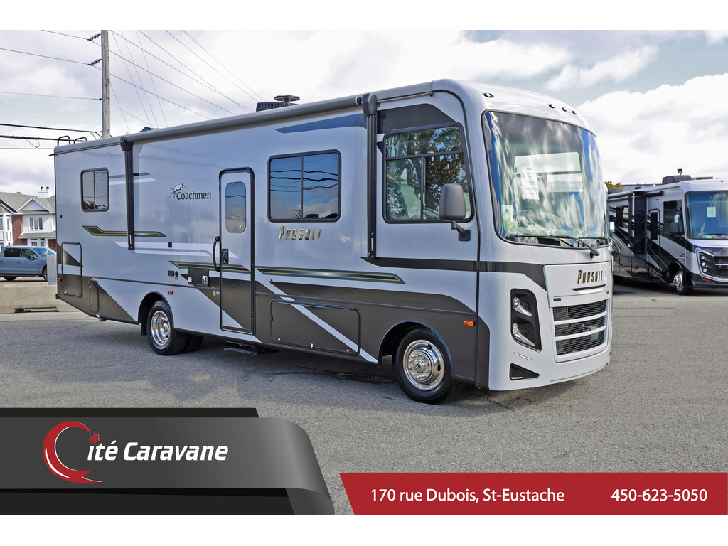 Coachmen Pursuit 29XPS 2024 Classe A Ce magnifique VR mesure environ 31 pieds de longueur avec un loft suspendu, un canapé avec rangement, un moteur Ford V8 de 7,3 L et un châssis Ford. Ce Pursuit Precision comprend des guides de tiroir à roulement à billes à fermeture automatique, une quincaillerie en nickel brossé, un téléviseur LED Coach, une douche extérieure, un réservoir noir, une hotte de cuisinière en acier inoxydable, un réfrigérateur à double porte en acier inoxydable, un robinet de cuisine de grande hauteur, une cuisinière à 3 brûleurs en acier inoxydable avec verre encastré. couvercle, four à micro-ondes en acier inoxydable, centre de commande de l'autocar, lumières LED intérieures, vérins de stabilisation d'alimentation arrière, branchement extérieur au propane, etc. 1348$+txs/MOIS www.citecaravane.com 450-623-5050 170 rue dubois , St-eustache J7P 4W9 Coachmen Pursuit 29XPS 2024 This beautiful RV is approximately 31 feet in length with an overhead loft, sofa with storage, a V8 7.3L Ford engine, and a Ford chassis. This Pursuit Precision features self closing ball bearing drawer guides, brushed nickel hardware, LED Coach TV, outside shower, black tank flush, stainless steel range hood, stainless steel double door refrigerator, high rise kitchen faucet, stainless steel 3 burner range with recessed glass cover, stainless steel microwave oven, coach command center, interior LED lights, rear power stabilizing jacks, exterior propane hookup etc etc 1348$+txs/MONTH www.citecaravane.com 450-623-5050 170 rue dubois , St-eustache J7P 4W9