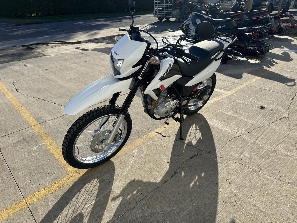 Honda XR150L 2024 – Polyvalence et Aventure au Rendez-vous   La Honda XR150L 2024 est la moto idéale pour explorer la campagne, rouler en ville ou partir à l'aventure sur les sentiers. Polyvalente, robuste et facile à conduire, elle est parfaite pour les motocyclistes recherchant une machine fiable et économique.   Moteur et Performance :   • Moteur monocylindre 149 cm³ refroidi par air – Puissance douce et faible entretien   • Boîte à 5 rapports – Transmission fluide et adaptable à toutes les conditions   • Démarreur électrique – Démarrage facile, peu importe la situation      Confort et Maniabilité :   • Hauteur de selle de 32,8 po – Accessibilité et confiance pour tous les pilotes   • Suspension optimisée – Conçue pour une conduite agréable sur route et sentier   • Roues pleine grandeur – Excellente adhérence et stabilité sur tous types de terrains      Caractéristiques Pratiques :   • Réservoir de 10,5 litres – Grande autonomie pour plus de liberté   • Porte-bagages arrière de série – Idéal pour transporter vos essentiels   • Phare puissant et tableau de bord moderne – Visibilité et style au rendez-vous   Fiable, économique et prête pour toutes vos aventures, la Honda XR150L 2024 est un excellent choix pour les amateurs de liberté sur deux roues.   Disponible chez Moto Sport 100 Limites à Drummondville.   Appelez-nous au (819) 445-6686 !