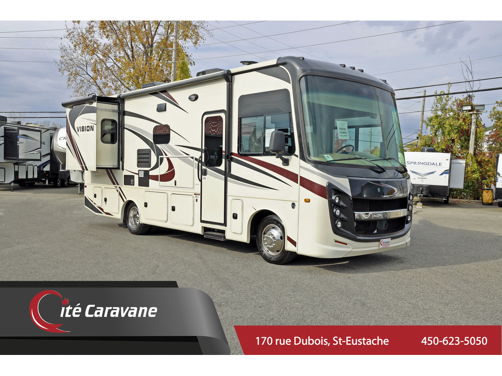 2020 Entegra Coach Vision 26X VR Classe A . Ce magnifique véhicule récréatif comprend 2 extensions, un aménagement spacieux et confortable, des vérins de nivellement hydrauliques automatiques, un châssis Ford F53 et un moteur Triton V-10 de 6,8 L. Cet incroyable VR comprend des caméras arrière et de vision latérale avec moniteur, un store électrique avec lumières DEL, un centre de divertissement extérieur avec TV et DVD / radio, un système d'info divertissement, un téléviseur LED dans le salon, un toit en fibre de verre et les toiles de recouvrement d’extensions. L'équipement en option comprend un lit superposé et une télévision. La liste impressionnante des caractéristiques standard de la Vision, des compartiments verrouillables , des couvert avant et arrière en fibre de verre monobloc, un pare-brise panoramique , un siège conducteur à 6 directions, micro-ondes à convection inoxydable, toit en fibre de verre , guides à tiroir à roulement à billes, grande douche et bien plus encore! 1197$+txs/MOIS www.citecaravane.com 450-623-5050 170 Rue dubois St-eustache! Le plus grand inventaire de VR au Canada 2020 Entegra Coach Vision 26X Class A This beautiful RV features 2 slide-outs, a comfortable, spacious layout, automatic hydraulic leveling jacks, Ford F53 chassis and a 6.8L Triton V-10 engine with 320HP. This amazing RV boasts Customer Value Package which features backup & side-view cameras with monitor, electric awning with LED lights, exterior entertainment center with TV & DVD/radio, infotainment system, LED TV in living room, roller shades, seamless crowned fiberglass roof and slide-out cover awnings. Optional equipment includes a front overhead bunk & a bedroom TV. The Vision's impressive list of standard features, lockable slam latch storage compartments, one-piece fiberglass front and rear caps, panoramic windshield with power shade, 6-way power driver's seat, stainless convection microwave, seamless crowned fiberglass roof , ball-bearing drawer guides , large shower and much more ! 1197$+txs/MONTH www.citecaravane.com 450-623-5050 170 Rue dubois St-eustache ! Canadas biggest RV inventory