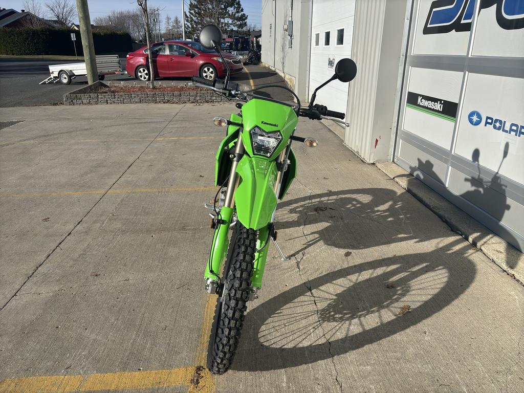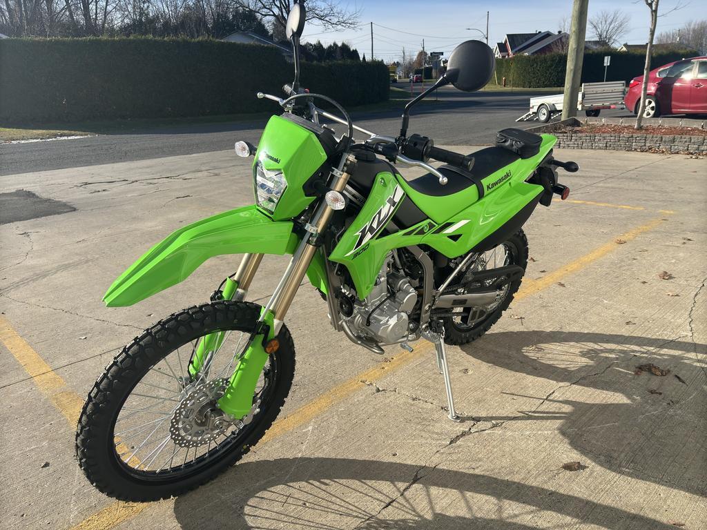 Kawasaki KLX300 2025 - Chez Moto Sport 100 Limites à Drummondville   La Kawasaki KLX300 2025 est une moto double usage, idéale pour les passionnés d'aventures sur route et hors route grâce à son design robuste et ses caractéristiques bien pensées. Conçue pour offrir une polyvalence maximale, elle arbore un look sportif avec un carénage élégant, des panneaux latéraux et des garde-boues modernes.   Points forts du modèle :   • Phare à DEL pour une visibilité améliorée et un feu arrière compact.   • Suspension à long débattement, optimisée pour une performance réactive en tout-terrain.   • Roues de 21 pouces à l'avant et de 18 pouces à l'arrière, parfaites pour une conduite équilibrée et une maîtrise en terrain varié.   • Freins à disques à pétales de large diamètre, offrant une puissance de freinage fiable.   • Instrumentation numérique pour un affichage clair et intuitif.   • Système de gestion de la chaleur, garantissant un confort optimal même lors des longues sorties.   • Ergonomie confortable qui permet de rouler de longues heures sans fatigue.   Avec sa capacité à passer des sentiers aux routes pavées, la KLX 300 est parfaite pour ceux qui cherchent une expérience de conduite authentique et sans compromis.   Disponible chez Moto Sport 100 Limites à Drummondville. Appelez-nous au (819) 445-6686 !