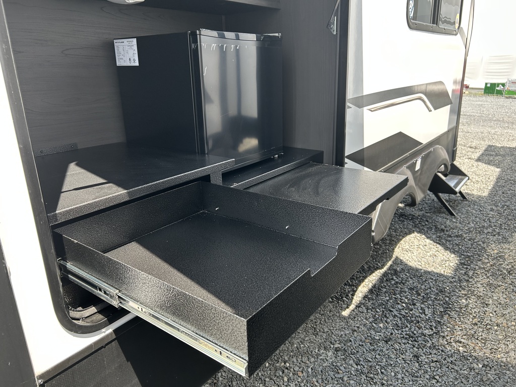 Options : Jantes aluminium, Réservoir de propane, Douche, Toilette, Chaine stéréo, Micro-onde, Cuisinière, Auvent, Chauffe-eau