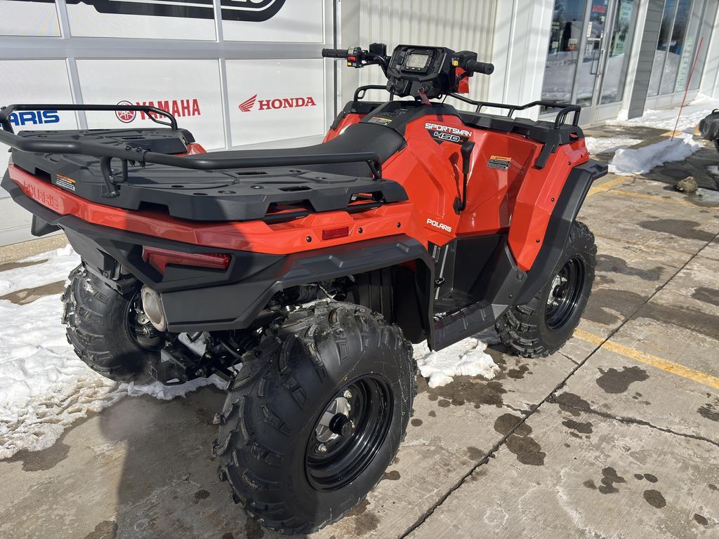 Polaris Sportsman 450 H.O. EPS 2025 : Puissance, Confort et Polyvalence pour Toutes Vos Aventures   EN PRIME : EXTENSION D'AILES KIMPEX (INCLUS)   Le Polaris Sportsman 450 H.O. EPS 2025 est le compagnon idéal pour les passionnés de plein air et les travaux sur le terrain. Avec sa direction assistée électronique (EPS), ce VTT offre une maniabilité sans effort, même sur les terrains les plus difficiles.   Caractéristiques clés :   • Moteur de 33 chevaux : Puissant et fiable pour accomplir toutes vos tâches.   • Capacité de remorquage de 1 350 lb : Idéal pour les travaux agricoles ou les sorties en pleine nature.   • Suspension indépendante : MacPherson Strut à l'avant et double bras triangulaire à l'arrière pour une conduite fluide et confortable.   • Garde au sol de 26 pouces : Optimise la maniabilité sur tous types de terrains.   • Porte-bagages avant et arrière : Capacité combinée de 485 lb pour transporter tout votre équipement.   Technologie et sécurité :   Doté d'un tableau de bord numérique et de freins hydrauliques à disque, le Sportsman 450 H.O. 2025 allie innovation et sécurité pour une expérience de conduite sans compromis.      Pourquoi choisir le Polaris Sportsman 450 H.O. EPS 2025 ?   • Polyvalence : Convient aux travaux, à la chasse et aux aventures en forêt.   • Confort supérieur : Suspension indépendante et direction assistée pour une expérience de conduite agréable.   • Fiabilité Polaris : Conçu pour durer et répondre à vos besoins.   Disponible chez Moto Sport 100 Limites !   Ne cherchez plus, le Polaris Sportsman 450 H.O. EPS 2025 vous attend chez Moto Sport 100 Limites à Drummondville.   ?? Appelez-nous au (819) 445-6686 pour en savoir plus ou pour réserver votre VTT dès aujourd'hui !