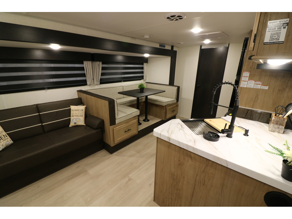 GREY WOLF 29NM 2026 Roulotte familiale pouvant accueillir jusqu'à 12 personnes. Elle a un poids de 6800 livres. INTÉRIEUR: - Banquette en U qui se transforme en lit - Réfrigérateur électrique 12V - Cuisinière avec dessus vitré - Micro-ondes air fryer et convection - Sofa lit - Foyer électrique - Chambre arrière pour enfants avec table et plusieurs places pour dormir - Salle de bain toute équipée - Chambre avant munie d'une porte extérieure indépendante, d'un lit queen et beaucoup de rangement EXTÉRIEUR: - Marches robustes - Porte cargo - Cuisine extérieure - Coffres de rangement - Jack électrique - Douchette extérieure - Auvent électrique avec lumières DEL - Rack arrière photos à titre indicatif