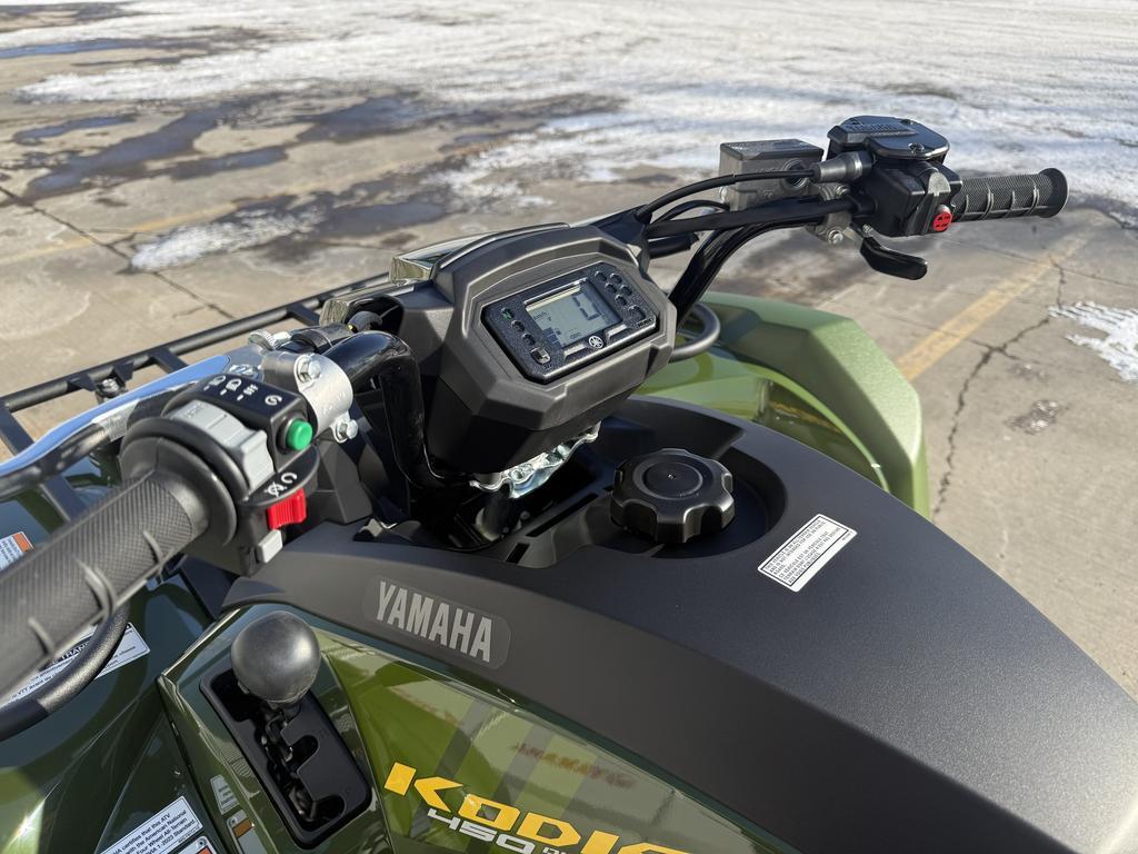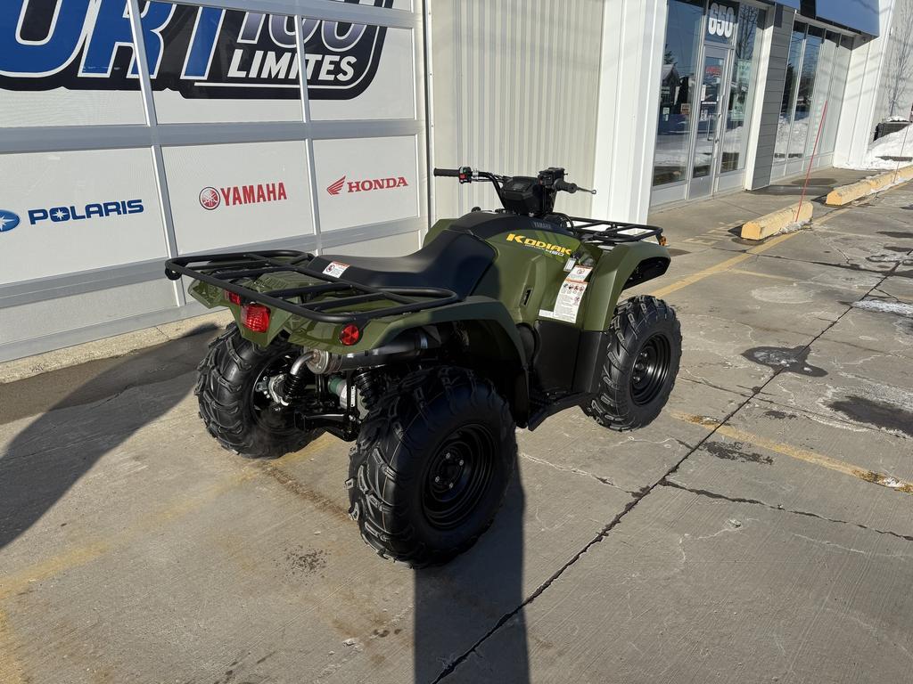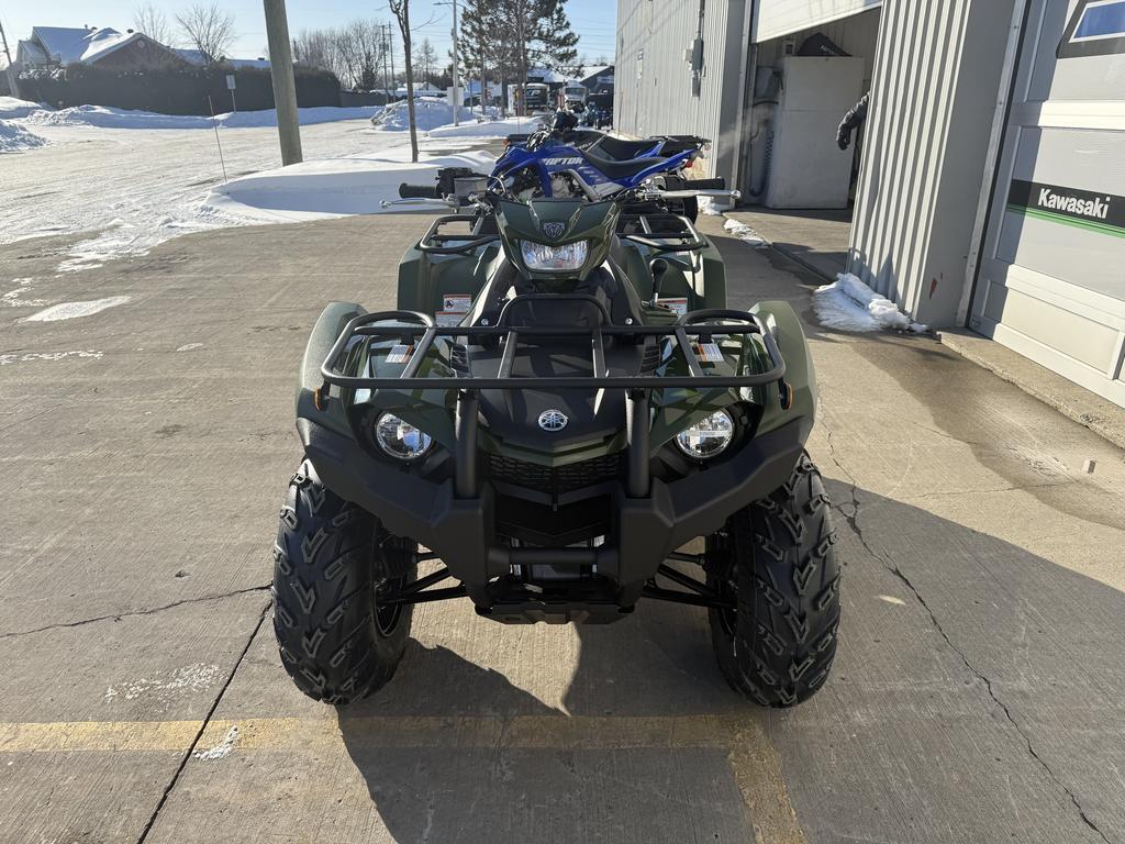 Yamaha Kodiak 450 EPS 2025 chez Moto Sport 100 Limites à Drummondville – Performance et Confort au Rendez-Vous   Le Yamaha Kodiak 450 EPS 2025 est le choix idéal pour ceux qui recherchent un VTT intermédiaire combinant puissance, maniabilité et durabilité. Conçu pour exceller sur tous les types de terrains, il procure une conduite souple et maîtrisée, que ce soit pour le travail ou l'aventure.   Capacité et Contrôle   • Direction à assistance électrique (DAE) Yamaha : Offre un équilibre parfait entre assistance et retour d'information pour une réponse précise, s'adaptant aux variations du terrain en temps réel.   • Transmission UltramaticMD : Système automatique avec embrayage centrifuge qui réduit l'usure de la courroie tout en assurant un freinage moteur efficace aux quatre roues.   • Système de refroidissement dédié : Maintient des performances constantes et prolonge la durée de vie des composants mécaniques.      Confort et Maniabilité   • Suspension indépendante à double triangle : Assure une posture optimisée et une conduite fluide dans toutes les conditions.   • Débattement optimisé :   • Avant : 15,2 cm (6,7 po)   • Arrière : 17,8 cm (7,4 po)   Offrant ainsi une absorption efficace des chocs sur les sentiers accidentés.      Fiabilité et Longévité   • Transmission robuste avec courroie surdimensionnée : Conçue pour supporter le couple du moteur et assurer une durabilité maximale.   • Garantie limitée de 10 ans sur la courroie trapézoïdale : Une exclusivité Yamaha qui assure tranquillité d'esprit et protection à long terme.      Caractéristiques Clés   • Moteur monocylindre de 421 cm³ avec SACT et refroidissement liquide.   • Démarrage électrique pour une mise en marche rapide et fiable.   • Culasse à 2 soupapes et corps de cylindre en aluminium pour un poids réduit et une meilleure dissipation thermique.   • Piston en aluminium forgé avec jupe courte pour une durabilité accrue.   • Arbre d'équilibrage entraîné par engrenages pour une réduction des vibrations et une conduite plus fluide.   Disponible chez Moto Sport 100 Limites à Drummondville   Appelez-nous dès aujourd'hui au (819) 445-6686 pour en savoir plus ou réserver votre Yamaha Kodiak 450 EPS 2025 !