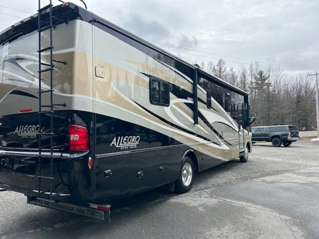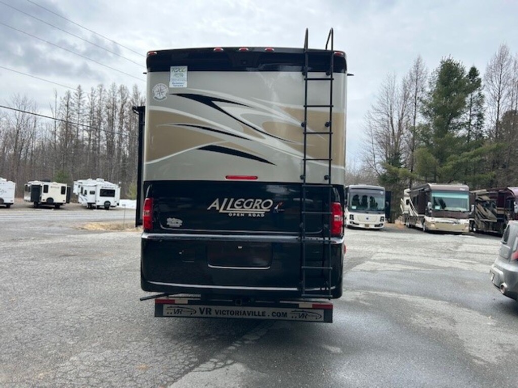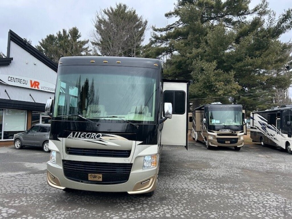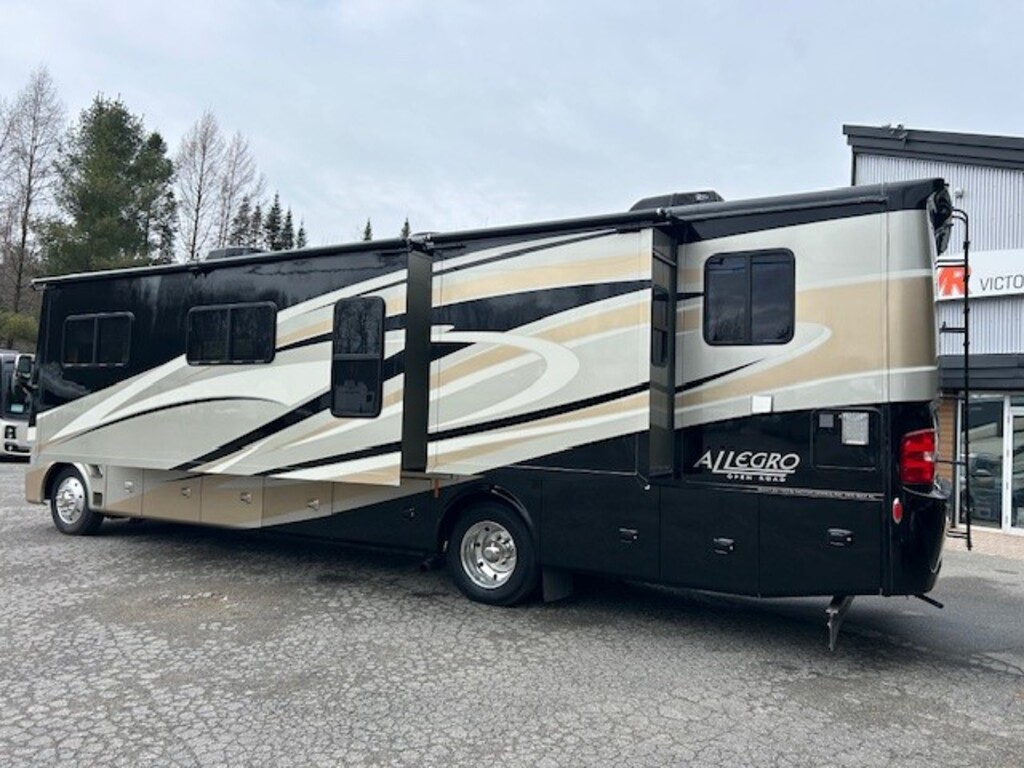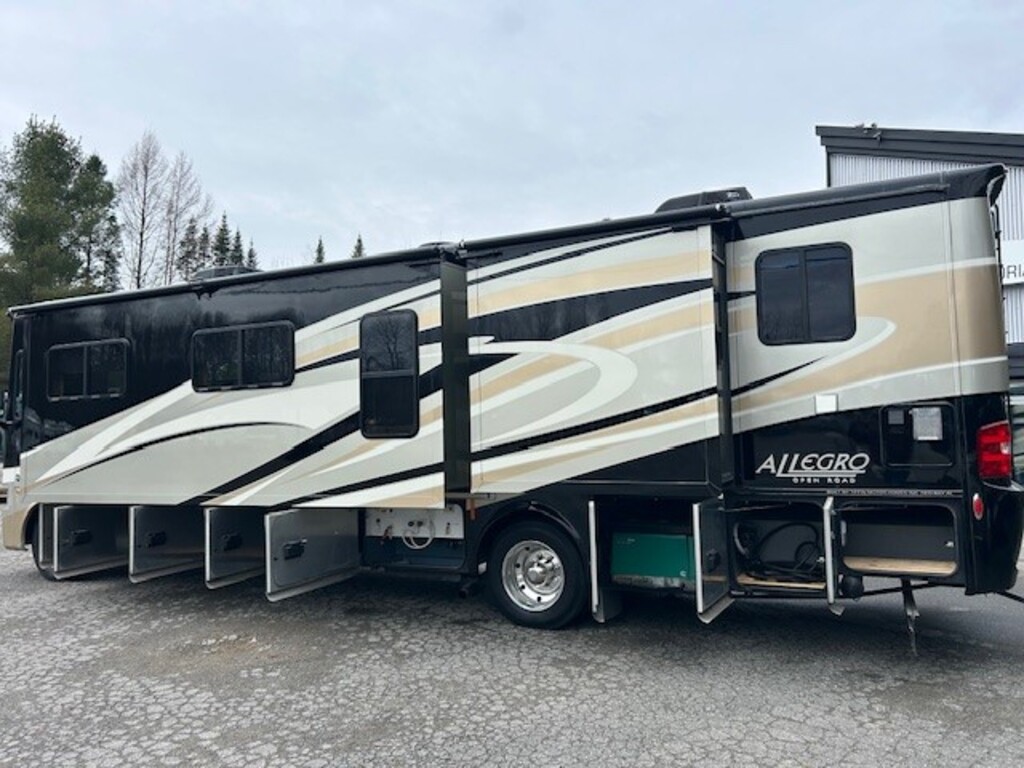 Tiffin Allegro Open Road 36LA 2015, Full paint, Mécanique Ford V10, Génératrice Cummins 7000W, Chassis Ford 30,000lbs, Roues aluminium Alcoa 22.5 pouces, Peut dormir jusqu'à 6 personnes, Grand réfrigérateur, Laveuse/sécheuse, 2 salles de bains, Lit queen, Téleviseur extérieur, Grandes portes de coffres, Beaucoup de rangements intérieur/extérieur, À VOIR Année : 2015 Mécanique : Ford V10 Triton 6.8 litres Châssis : Ford Carburant : Essence Transmission : TorqShift Automatique 5 vitesses Motricité : 4X2 Longueur hors-tout(pieds) : 36.8 Largeur(pieds) : 8.4 Hauteur(pieds) : 12.8 Empattement(pouces) : 252 PNBV(Lbs) : 24,000 Réservoir essence(Gal.) : 80 Capacité eau fraîche(Gal.) : 70 Capacité eau grise(Gal.) : 66 Capacité eau noir(Gal.) : 50 Capacité réservoir propane(Lbs) : 102 Nombre d’extensions : 2 Capacité d’hébergement : 6 Pneus : 225/80R 22.5G Air conditionné(BTU) : 15,000 Chauffage(BTU) : 30,000
