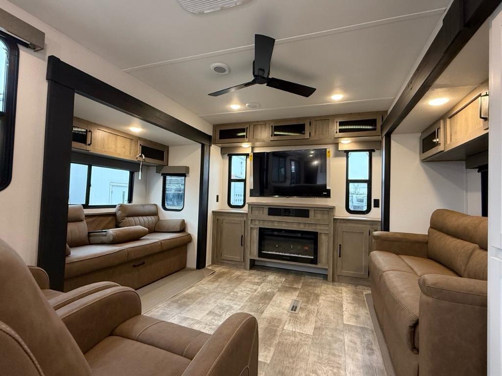 Palomino Puma 38DEN 2025Roulotte de Parc Puma 38DEN 2025 Mesure 40'6 et pèse 12 434 lbs Cette magnifique roulotte de parc possède un grand salon arrière incluant 2 fauteuils pivotants, canapés-lit, foyer électrique et téléviseur. Table bistro avec banquette et chaises, réfrigérateur résidentiel, salle de bain complète et chambre des maîtres disposant d'un lit Queen ainsi qu'une laveuse/sécheuse. Auvent de 18' Réservoir d'eau fraîche de 43 Gal., d'eaux usés de 70 Gal. *** Prendre note que les photos et les options décrites peuvent différées *** Toute l'équipe de Centre du VR est fière de vous présenter le plus vaste inventaire de véhicules récréatifs neufs et d'occasions à vendre au Québec. Vous y trouverez notamment les marques Columbus, Rockwood, Impression, Kodiak, Coleman, Cruiser RV, Flagstaff, E-Pro, Springdale, Sunset Trail, Cougar, Chaparral, Bontrager Outdoors, motorisés Axis, Hurricane, Outlaw, Coachmen Cross Trail, Prism, Echelon, Fleetwood, Four winds, Compass, Beyond, Nova et Pixel. Remorques N&N, Apogée et Armorteck sont aussi disponibles. En inventaire pour vous, la série de génératrices Ducar. Vous avez un coup de coeur ? Envoyez-nous une demande d'information. Financement sur place. N'oubliez pas également que rien ne vaut une visite du modèle qui vous intéresse pour vous aider à prendre une décision éclairée. Passez donc nous voir afin de jeter un coup d'oeil plus détaillé à nos caravanes et caravanes à sellettes neuves.