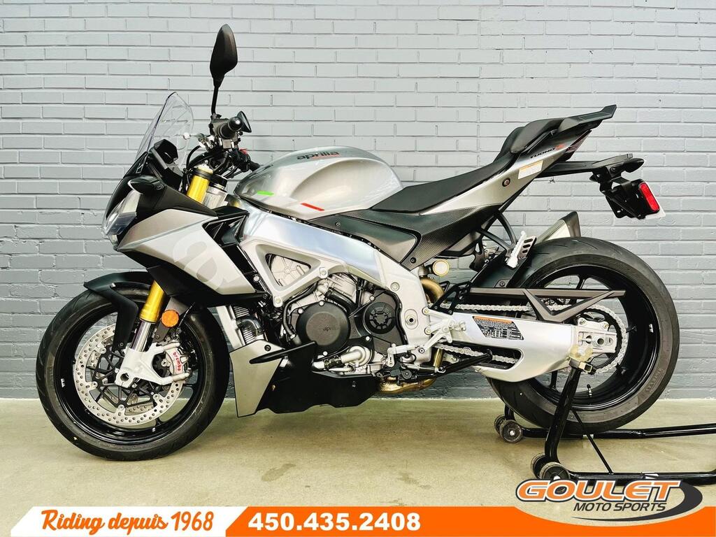 APRILIA TUONO V4 1100 TARMAC GREY 2021   \*\*\* TRANSPORT ET PRÉPARATION INCLUS DANS LE PRIX \*\*\*   La Tuono V4 reste la seule naked sportive propulsée par un moteur V4 étroit de 65° aux caractéristiques uniques. Le V4 de 1 077 cm3 confirme sa sonorité inimitable et ses performances exceptionnelles. Ses 175 CV lui permettent de dominer la catégorie Hypernaked grâce à l'équilibre extraordinaire que le V4 a développé avec une architecture de châssis et un ensemble électronique parfaitement réglés. La Tuono V4 1100RR est plus axé Grand Touring que la version Factory grâce à position de conduite plus confortable, un parebrise avant plus grand et un banc passager plus vaste avec poignées arrières.   - Moteur V4 de 1077cc devellopant 175hp et 89 lbs-ft de couple (torque).  - Nouveau bras oscillant (swingarm) en aluminium plus léger et doté d'un renfort inférieur comme en MotoGP.  - 6 modes de conduites, 3 pour la route, 3 pour la piste  - Traction Control ajustable en route (8 modes), Wheelie Control (3 modes), Frein Moteur ajustable, ABS ajustable  - Quickshift Up&Down  - Régulateur de vitesse (Cruise Control)  - Écran couleur TFT, Bluetooth ready.  - Groupe lumière avant au LED.   Cette unité est chez Goulet Moto Sports de Ste-Thérèse. Téléphonez au 450.435.2408   Possibilité de financement avec plusieurs institutions financières. 2ième chance au crédit disponible.   Goulet Moto Sports est votre concessionnaire moto depuis 1968. Fier représentant officiel des marques HONDA, APRILIA, MOTO GUZZI, VESPA, PIAGGIO, KTM, NIU, SURRON et URAL pour le grand Montréal. Nous avons un énorme choix de moto usagés inspectées par nos professionnels. 2 adresses pour vous servir, soit à Sainte-Thérèse (450.435.2408) et Saint-Jérôme (450.431.6622).  Essence, Transmission: Manuelle, 6 vitesses, Système de refroidissement: Refroidi au liquide, 4 cylindres, 175.0 CV, 1077.0 CC, Garantie: 2 ANS  ----------------------  APRILIA TUONO V4 1100 TARMAC GREY   \*\*\* TRANSPORT AND PREPARATION INCLUDED IN THE PRICE \*\*\*   The Tuono V4 remains the only sporty naked powered by a narrow 65° V4 engine with unique characteristics. The 1077cc V4 confirms its inimitable sound and exceptional performance. Its 175 HP allows it to dominate the Hypernaked category thanks to the extraordinary balance that the V4 has developed with a perfectly tuned chassis architecture and electronics package. The Tuono V4 1100RR is more Grand Touring oriented than the Factory version thanks to a more comfortable driving position, a larger front windshield and a larger passenger bench with rear grab handles.   - 1077cc V4 engine developing 175hp and 89 lbs-ft of torque (torque).  - New swingarm in lighter aluminum and equipped with a lower reinforcement like in MotoGP.  - 6 driving modes, 3 for the road, 3 for the track  - Traction Control adjustable on the road (8 modes), Wheelie Control (3 modes), Adjustable Engine Brake, Adjustable ABS  - Quickshift Up&Down  - Cruise control  - TFT color display, Bluetooth ready.  - LED front light group.   This unit is at Goulet Moto Sports in Ste-Thérèse. Call 450.435.2408   Possibility of financing with several financial institutions. 2nd chance credit available.   Goulet Moto Sports has been your motorcycle dealer since 1968. Proud official representative of the HONDA, APRILIA, MOTO GUZZI, VESPA, PIAGGIO, KTM, NIU, SURRON and URAL brands for greater Montreal. We have a huge selection of used motorcycles inspected by our professionals. 2 addresses to serve you, in Sainte-Thérèse (450.435.2408) and Saint-Jérôme (450.431.6622).  Gasoline, Transmission: Manual, 6 speeds, Cooling System: Liquid cooling, 4 cylinders, 175.0 HP, 1077.0 CC, Warranty: 2 ANS
