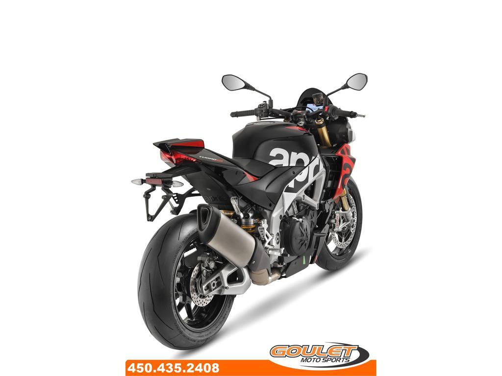 APRILIA TUONO V4 1100 FACTORY - TIME ATTACK   \*\*\* TRANSPORT ET PRÉPARATION INCLUS DANS LE PRIX. 1800$ DE RABAIS INCLUS \*\*\*   L'Aprilia Tuono V4 Factory est une véritable machine à performance, avec de nouvelles lignes, un nouvel aérodynamisme avec des ailerons intégrés, un bras oscillant issu du Moto GP, une électronique avancée et 175 puissants chevaux. La version Factory possède une position de conduite plus sportive, la coque arrière de la RSV4 mais surtout les Suspensions Électronique Active Olhins   - Moteur V4 de 1077cc devellopant 175hp et 89 lbs-ft de couple (torque).  - Nouveau bras oscillant (swingarm) en aluminium plus léger et doté d'un renfort inférieur comme en MotoGP.  - Suspension Électronique Active par Olhins.  - 6 modes de conduites, 3 pour la route, 3 pour la piste  - Traction Control ajustable en route (8 modes), Wheelie Control (3 modes), Frein Moteur ajustable, ABS ajustable  - Quickshift Up&Down  - Régulateur de vitesse (Cruise Control)  - Écran couleur TFT, Bluetooth ready.  - Groupe lumière avant au LED.   La moto est chez Goulet Moto Sports de Ste-Thérèse. Téléphonez au 450.435.2408   Possibilité de financement avec plusieurs institutions financières. 2ième chance au crédit disponible. Prix spécial ne peux pas être combiné avec le financement spécial Aprilia   Goulet Moto Sports est votre concessionnaire moto depuis 1968. Fier représentant officiel des marques HONDA, APRILIA, MOTO GUZZI, VESPA, PIAGGIO, KTM et les sidecars URAL pour le grand Montréal. Nous avons un énorme choix de moto usagés inspectées par nos professionnels. 2 adresses pour vous servir, soit à Sainte-Thérèse (450.435.2408) et Saint-Jérôme (450.431.6622).   Goulet Moto Sports ne peut être tenu responsable d'une omission, d'un délai ou d'une erreur de transcription de l'information. Le prix affiché réflète la condition de l'unité. Pour différentes raisons les prix peuvent différer de ceux indiqués en ligne. Les données sont affichées à titre indicatif seulement et ne peuvent être considérées comme une information contractuelle. Nous vous encourageons vivement à nous consulter pour plus de détails avant de vous déplacer. Des frais tels que taxes, frais de préparation, administrations ou autres peuvent s'appliquer.   Comparable a une Ducati streetfighter, BMW S1000R, KTM Superduke, Yamaha MT-10, Honda CB1000R  Essence, Transmission: Manuelle, 6 vitesses, Système de refroidissement: Refroidi au liquide, 4 cylindres, 175.0 CV, 1077.0 CC, Poids: 407.00 lbs, Garantie: 2 ANS  ----------------------  APRILIA TUONO V4 1100 FACTORY - TIME ATTACK   \*\*\* TRANSPORT AND PREPARATION INCLUDED IN THE PRICE \*\*\*   The Aprilia Tuono V4 Factory is a true performance machine, with new lines, new aerodynamics with integrated fins, a Moto GP-derived swingarm, advanced electronics and 175 powerful horsepower. The Factory version has a sportier driving position, the rear hull of the RSV4 but above all the Olhins Active Electronic Suspensions   - 1077cc V4 engine developing 175hp and 89 lbs-ft of torque (torque).  - New swingarm in lighter aluminum and equipped with a lower reinforcement like in MotoGP.  - Active Electronic Suspension by Olhins.  - 6 driving modes, 3 for the road, 3 for the track  - Traction Control adjustable on the road (8 modes), Wheelie Control (3 modes), Adjustable Engine Brake, Adjustable ABS  - Quickshift Up&Down  - Cruise control (Cruise Control)  - TFT color display, Bluetooth ready.  - LED front light group.   This unit is at Goulet Moto Sports in Ste-Thérèse. Call 450.435.2408   Financing available with several financial institutions. Second chance credit available. Special pricing cannot be combined with Aprilia special financing.   Goulet Moto Sports has been your motorcycle dealership since 1968. We are a proud official representative of HONDA, APRILIA, MOTO GUZZI, VESPA, PIAGGIO, KTM, and URAL sidecars in Greater Montreal. We have a huge selection of used motorcycles inspected by our professionals. We have two locations to serve you: Sainte-Thérèse (450.435.2408) and Saint-Jérôme (450.431.6622).   Goulet Moto Sports cannot be held responsible for any omissions, delays, or errors in the transcription of information. The price displayed reflects the condition of the unit. For various reasons, prices may differ from those indicated online. The data displayed is for informational purposes only and should not be considered contractual information. We strongly encourage you to contact us for more details before traveling. Fees such as taxes, preparation fees, administration, or other charges may apply.   Comparable to a Ducati streetfighter, BMW S1000R, KTM Superduke, Yamaha MT-10, Honda CB1000R  Gasoline, Transmission: Manual, 6 speeds, Cooling System: Liquid cooling, 4 cylinders, 175.0 HP, 1077.0 CC, Weight: 407.00 lbs, Warranty: 2 ANS