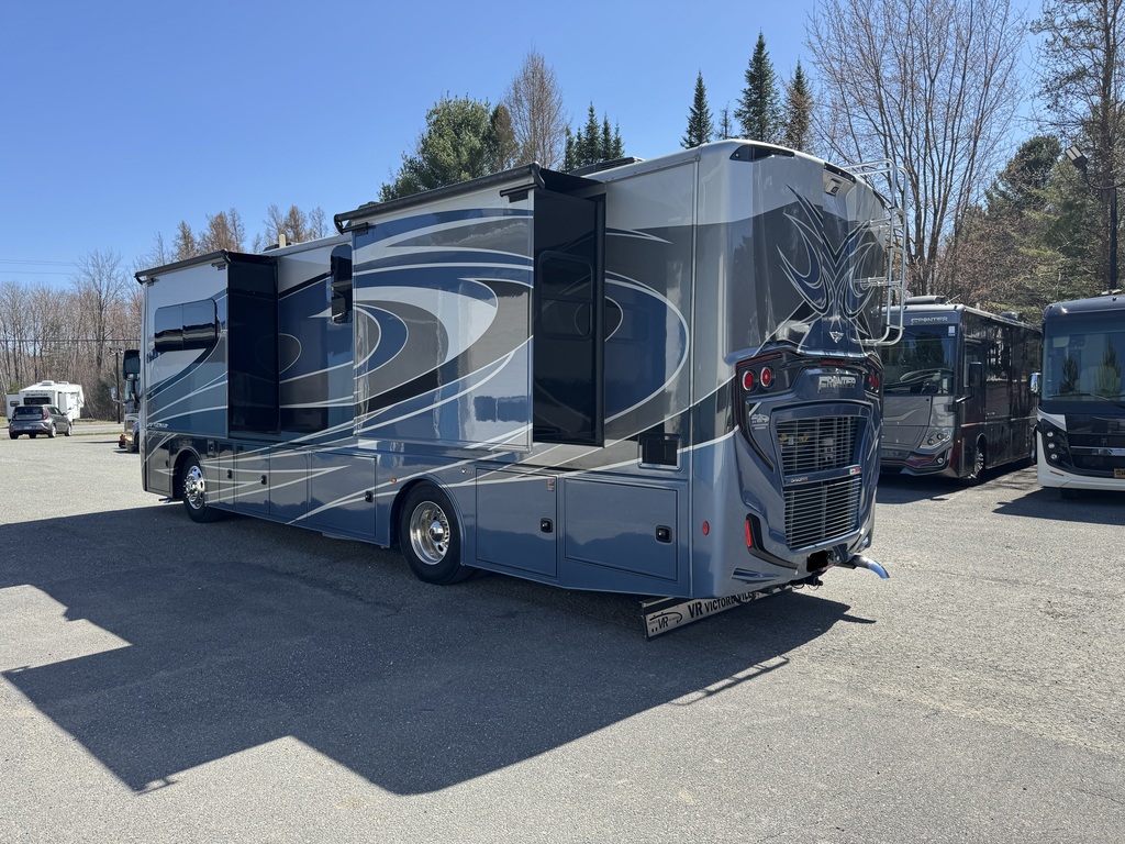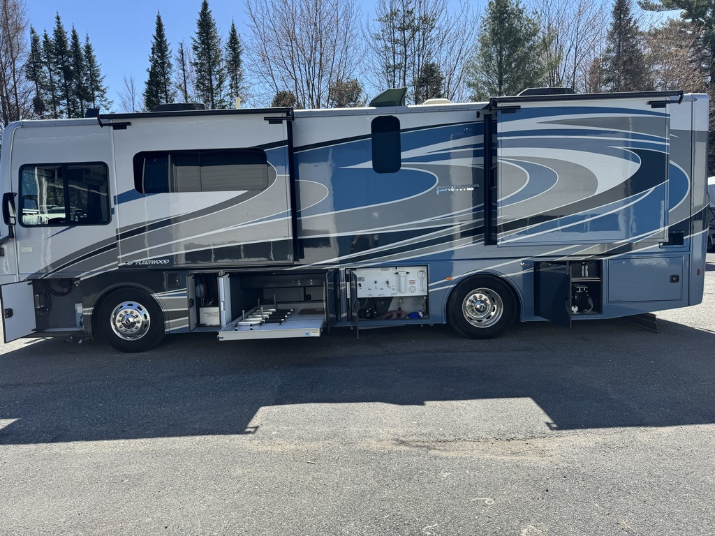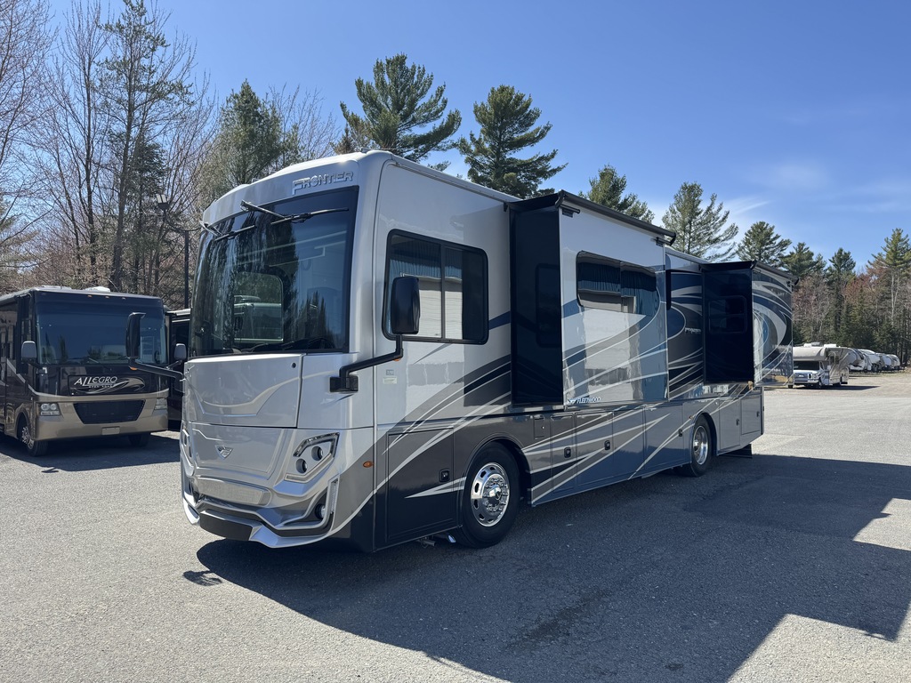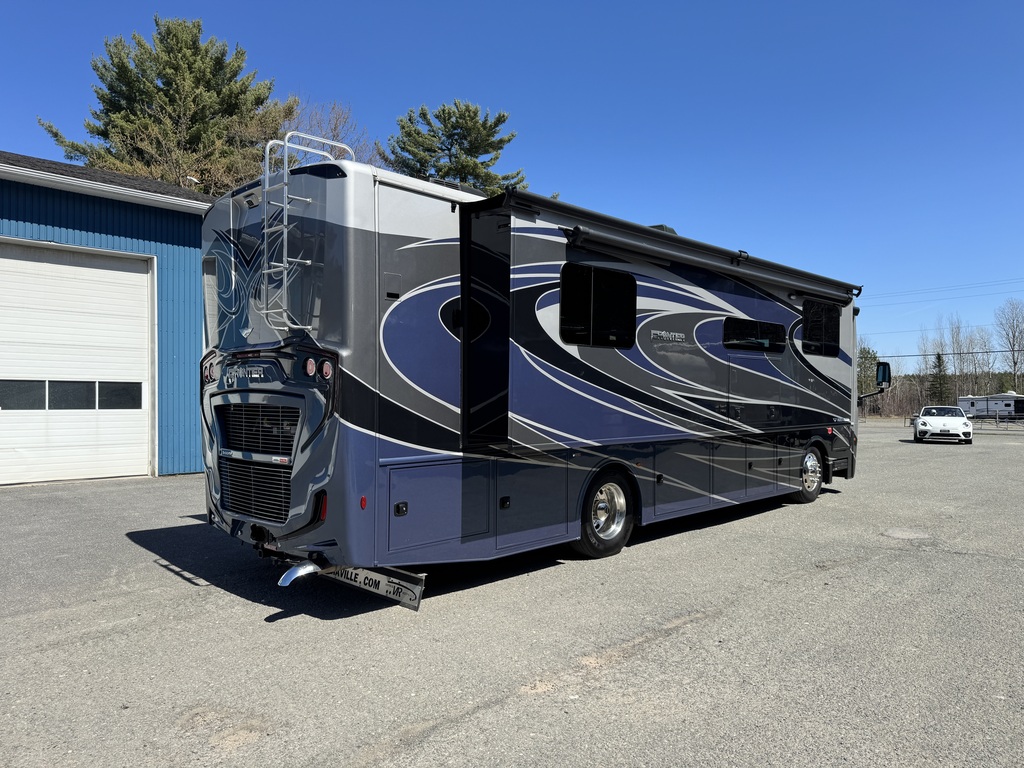 Fleetwood Frontier 34GT 2022, Mécanique Cummins I6 Diesel Pusher, Chassis Freightliner XC Series, Génératrice Cummins Onan Quiet Diesel 6000W, Système de chauffage dans le plancher Aqua-Hot, Drop-bed avant, Foyer électrique, Causeuse style cinéma maison, Téléviseur 50 pouces rabattable dans le mur, Micro-ondes 30 pouces en stainless à convection, plaque de cuisson, Grand évier de stainless, Réfrigérateur électrique résidentiel, Ensemble laveuse/sécheuse, Grande chambre arrière avec beaucoup de rangement, Lit King, Contrôle multiplex pour tout contrôler à porter de main, VR qui a été vendu neuf chez VR Victoriaville et qui a toujours été bien entretenu. Une visite vous convaincra! Année : 2022 Mécanique : Cummins I6 Diesel Pusher 340HP Châssis : Freightliner XC Series Carburant : Diesel Transmission : Automatique Allison 6 vitesses Motricité : 4X2 Longueur hors-tout(pieds) : 35.3 Largeur(pieds) : 8.5 Hauteur(pieds) : 12.8 Empattement(pouces) : 206 PNBV(Lbs) : 32,400 Réservoir essence(Gal.) : 100 Capacité eau fraîche(Gal.) : 96 Capacité eau grise(Gal.) : 65 Capacité eau noir(Gal.) : 45 Capacité réservoir propane(Lbs) : N/A Nombre d’extensions : 3 Capacité d’hébergement : 5 Pneus : 275/80R 22.5 Air conditionné(BTU) : 27,000