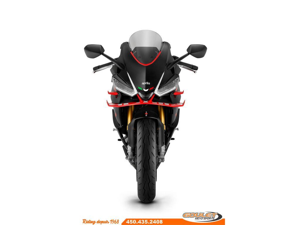 APRILIA RS 660 FACTORY 2025 - DARK BANSHEE   \*\*\* FRAIS DE TRANSPORT ET PRÉPARATION INCLUS DANS LE PRIX \*\*\*   La nouvelle moto Aprilia RS 660 Factory transpose sur la route l'expérience gagnante de la piste et le savoir-faire Aprilia. Son design unique donne forme à une moto légère et compacte aux volumes élégants et agiles.   - Nouveau bicylindre de 660 cm3 avec une nouvelle puissance record de 105 cv et un couple incroyablement élevé.  - Nouveau pack électronique : Système Ride by Wire amélioré pour un contrôle plus précis de l'accélérateur et une gestion plus fluide de la puissance.  - Nouvelle Suspension Öhlins: Fourche avant NIX et amortisseur arrière STX 46 entièrement réglable.  - Système APRC: 5 modes de conduite, Contrôle de traction ajustable, Wheelie Control, Aprilia Quick Shift, Cruise Control  - Commandes avec rétroéclairage LED : Les boutons sont désormais rétroéclairés, offrant une meilleure visibilité dans des conditions de faible éclairage.  - Nouveau tableau de bord:couleur TFT plus grand (5pc), Bluetooth ready  - Freins: ABS avec technologie Cornering  - Groupe optique avantà 3 éléments, tous équipés de LED  - Batterie au lithium   Cette unité est chez Goulet Moto Sports de Ste-Thérèse. Téléphonez au 450.435.2408   Possibilité de financement avec plusieurs institutions financières. 2ième chance au crédit disponible. Option de financement Aprilia disponible sur PDSF   Goulet Moto Sports est votre concessionnaire moto depuis 1968. Fier représentant officiel des marques HONDA, APRILIA, MOTO GUZZI, VESPA, PIAGGIO, KTM, NIU, SURRON et URAL pour le grand Montréal. Nous avons un énorme choix de moto usagés inspectées par nos professionnels. 2 adresses pour vous servir, soit à Sainte-Thérèse (450.435.2408) et Saint-Jérôme (450.431.6622).   Goulet Moto Sports ne peut être tenu responsable d'une omission, d'un délai ou d'une erreur de transcription de l'information. Le prix affiché reflète la condition de l'unité. Pour différentes raisons les prix peuvent différer de ceux indiqués en ligne. Les données sont affichées à titre indicatif seulement et ne peuvent être considérées comme une information contractuelle. Nous vous encourageons vivement à nous consulter pour plus de détails avant de vous déplacer. Des frais tels que taxes, immatriculation, administrations ou autres peuvent s'appliquer.   Se compare très avantageusement aux Yamaha R7, Honda CBR 650, Kawasaki Ninja 400RR, Kawasaki Ninja ZX-6R, Suziki GSX-8R, Triumph Daytona 660  Essence, Transmission: Manuelle, 6 vitesses, Système de refroidissement: Refroidi au liquide, 2 cylindres, 105.0 CV, 660.0 CC, Garantie: 2 ans  ----------------------  APRILIA RS 660 FACTORY 2025 - DARK BANSHEE   \*\*\* SHIPPING AND PREPARATION INCLUDED IN THE PRICE \*\*\*   The new Aprilia RS 660 Factory motorcycle brings Aprilia's winning track experience and expertise to the road. Its unique design creates a lightweight and compact bike with elegant and agile dimensions.   - New 660cc twin-cylinder engine with a new record-breaking 105 hp and incredibly high torque.  - New electronics package: Improved Ride by Wire system for more precise throttle control and smoother power management.  - New Öhlins Smart EC 2.0 suspension for a more dynamic ride and better adaptation to road conditions. APRC System: 5 riding modes, Adjustable Traction Control, Wheelie Control, Aprilia Quick Shift, Cruise Control  - LED Backlit Controls: Buttons are now backlit, providing better visibility in low-light conditions.  - New Instrument Panel: Larger (5-piece) TFT color, Bluetooth ready  - Brakes: ABS with Cornering Technology  - 3-element front headlight assembly, all equipped with LEDs  - Lithium Battery   This unit is at Goulet Moto Sports in Ste-Thérèse. Call 450.435.2408   Financing available with several financial institutions. Second chance credit available. Aprilia financing option available on MSRP   Goulet Moto Sports has been your motorcycle dealer since 1968. Proud official representative of the HONDA, APRILIA, MOTO GUZZI, VESPA, PIAGGIO, KTM, NIU, SURRON, and URAL brands for the greater Montreal area. We have a huge selection of used motorcycles inspected by our professionals. We have two locations to serve you: Sainte-Thérèse (450.435.2408) and Saint-Jérôme (450.431.6622).   Goulet Moto Sports cannot be held responsible for any omissions, delays, or errors in the transcription of information. The price displayed reflects the condition of the unit. For various reasons, prices may differ from those indicated online. The data displayed is for informational purposes only and should not be considered contractual information. We strongly encourage you to contact us for more details before visiting. Fees such as taxes, registration, administration, and other charges may apply.   Compares very favorably to the Yamaha R7, Honda CBR 650, Kawasaki Ninja 400RR, Kawasaki Ninja ZX-6R, Suzuki GSX-8R, and Triumph Daytona 660.  Gasoline, Transmission: Manual, 6 speeds, Cooling System: Liquid cooling, 2 cylinders, 105.0 HP, 660.0 CC, Warranty: 2 ans