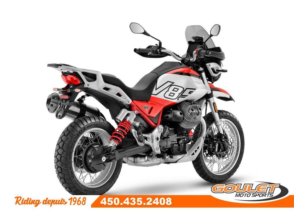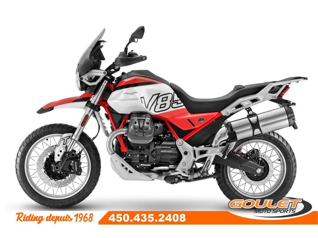 MOTO GUZZI V85TT - ROSSO FUJI   \*\*\* Frais de transport et préparation inclus dans le prix \*\*\*   Le Moto Guzzi V85 Strada 2025 est équipé d'un moteur V-twin de 850cc avec de nouvelles têtes de moteur améliorées, offrant une meilleure gestion thermique, moins de vibrations et des performances optimisées. Sa suspension avant inversée de 41 mm, son système de freinage avec disques de 320 mm et son contrôle de traction ajustable assurent une conduite stable et sécurisée sur tous les terrains. Le tableau de bord numérique TFT complète l'ensemble pour une expérience de conduite moderne et connectée.   - Nouveau moteur V2 Transversal désormais avec calage variable des soupapes produisant maintenant 80hp et plus de couple (torque).  - 5 Modes de conduite (Road, Rain, Off-Road, Sport et User)  - Contrôle de tractionajustable MGCT  - Régulateur de vitesses (Cruise Control)  - Nouveau écran couleur TFT de 5.0 pc  - Nouveau parebrise ajustable 5 positions  - Frein ABS avec mode ajustable  - Arbre d'entrainement (Driveshaft)   Cette unité est chez Goulet Moto Sports de Ste-Thérèse. Téléphonez au 450.435.2408   Possibilité de financement avec plusieurs institutions financières. 2ième chance au crédit disponible. Taux de financement spécial uniquement disponible sur prix de détail (voir condition sur Moto Guzzi Canada)   Goulet Moto Sports est votre concessionnaire moto depuis 1968. Fier représentant officiel des marques HONDA, APRILIA, MOTO GUZZI, VESPA, PIAGGIO, KTM, NIU, SURRON et URAL pour le grand Montréal. Nous avons un énorme choix de moto usagés inspectées par nos professionnels. 2 adresses pour vous servir, soit à Sainte-Thérèse (450.435.2408) et Saint-Jérôme (450.431.6622).   Goulet Moto Sports ne peut être tenu responsable d'une omission, d'un délai ou d'une erreur de transcription de l'information. Le prix affiché reflète la condition de l'unité. Pour différentes raisons les prix peuvent différer de ceux indiqués en ligne. Les données sont affichées à titre indicatif seulement et ne peuvent être considérées comme une information contractuelle. Nous vous encourageons vivement à nous consulter pour plus de détails avant de vous déplacer. Des frais tels que taxes, immatriculation, administrations ou autres peuvent s'appliquer.   La Moto Guzzi V85TT se compare à une BMW F 850GS, une Triumph Tiger, une KTM 790 Adventure, Yamaha Ténéré 700 ou une Africa Twin  Essence, Transmission: Manuelle, 6 vitesses, Système de refroidissement: Refroidi à l'air, 2 cylindres, 80.0 CV, 853.0 L, Garantie: 2 ans  ----------------------  MOTO GUZZI V85TT - ROSSO FUJI   \*\*\* Shipping and handling included in the price \*\*\*   The 2025 Moto Guzzi V85 Strada features an 850cc V-twin engine with new, improved engine heads, offering better thermal management, less vibration, and optimized performance. Its 41mm inverted front suspension, 320mm disc brakes, and adjustable traction control ensure a stable and secure ride on all terrains. The TFT digital instrument panel completes the package for a modern and connected riding experience.   - New transverse V2 engine, now with variable valve timing, now producing 80hp and more torque. 5 Riding Modes (Road, Rain, Off-Road, Sport, and User)  - Adjustable MGCT Traction Control  - Cruise Control  - New 5.0" TFT Color Display  - New 5-Position Adjustable Windshield  - ABS Brake with Adjustable Mode  - Driveshaft   This unit is at Goulet Moto Sports in Ste-Thérèse. Call 450.435.2408   Financing available with several financial institutions. Second chance credit available. Special financing rates only available on retail prices (see conditions on Moto Guzzi Canada).   Goulet Moto Sports has been your motorcycle dealer since 1968. Proud official representative of the HONDA, APRILIA, MOTO GUZZI, VESPA, PIAGGIO, KTM, NIU, SURRON, and URAL brands for the greater Montreal area. We have a huge selection of used motorcycles inspected by our professionals. Two locations to serve you, in Sainte-Thérèse (450.435.2408) and Saint-Jérôme (450.431.6622).   Goulet Moto Sports cannot be held responsible for any omission, delay, or transcription error. The price displayed reflects the condition of the unit. For various reasons, prices may differ from those indicated online. The data displayed is for informational purposes only and should not be considered contractual information. We strongly encourage you to contact us for more details before visiting. Fees such as taxes, registration, administration, and other charges may apply.   The Moto Guzzi V85TT compares to a BMW F 850GS, a Triumph Tiger, a KTM 790 Adventure, a Yamaha Ténéré 700, or an Africa Twin.  Gasoline, Transmission: Manual, 6 speeds, Cooling System: Air cooling, 2 cylinders, 80.0 HP, 853.0 L, Warranty: 2 ans