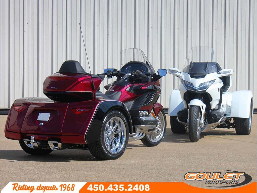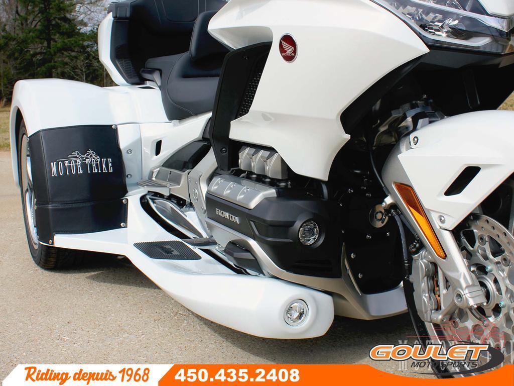 KIT MOTOR TRIKE POUR HONDA GOLDWING TOUR GÉNÉRATION 2018-2026   \*\*\* Prix pour kit installé\*, moto non incluse - contactez-nous pour une soumission sur votre moto \*\*\*   Transforme ton Honda Goldwing GL1800 en trike avec suspension indépendante arrière avec un kit Motor Trike. Le kit Condor IRS de Motor Trike est spécifique aux Goldwing de 2018 et plus, que ce soit le bagger, DCT ou Airbag. C'est le trike le plus confortable et stable grâce à sa suspension indépendante arrière ajustable à l'air. Vivez la meilleure expérience de votre vie. Avec ses lignes de carrosserie audacieuses, parfaitement adaptées à notre suspension arrière indépendante la plus agressive à ce jour, la conversion Condor pour motos Honda Gold Wing vous permet de contrôler votre moto.   Goulet Moto Sports fait des transformations Trike depuis plus de 25 ans avec plus de 200 conversions en trike depuis le début. Nous sommes les experts et les premiers à en faire au Québec.   LE KIT MOTOR TRIKE CONDOR IRS   - Spécifique pour les Honda Goldwing 2018 a 2025  - Suspension Indépendante Arrière (IRS)  - Compresseur à air pour l'ajustement de la suspension  - Plus de 10 cm de débattement de suspension  - Amortisseurs à ressorts progressifs et ballons d'air pour l'ajustement. Commande de suspension visuelle à l'avant  - Système arrière de frein à disque avec kit ABS arrière  - Prise de courant 12 volts dans le coffre  - Peinture et installation inclus  - Avance de fourche (rake kit) de 6 degrés pour faciliter la conduite disponible  - Frein à main disponible pour les modèles manuel (non-inclus)   Plusieurs accessoires en option pour une transformation à ton goût comme les marchepieds color match avec des fog au choix, peinture spéciale, les protèges ailes en cuir, le bumper arrière, un choix de roue (mag) optionnel pour rehausser le look. Tapis de valise, avance de fourche et même la renverse pour faciliter la conduite.   Une transformation Motor Trike est faite sur commande et peut prendre de 3 à 7 semaines pour être complété selon les options et peintures. Tout est fait chez Motor Trike, même la peinture. Goulet Moto Sports s'occupe de la transformation finale et de l'installation sur votre moto de choix. Nous pouvons aussi nous occuper de la certification à la SAAQ. Voir les conditions chez Goulet Moto Sports.   \* Le prix est approximatif et peux varier selon le moment de la commande et les options. Il inclus l'installation et la peinture 1 ton, prêt à partir. Le taux de change, coût de transport, accessoires, tarifs douaniers et autres conditions peuvent affecter le prix.   Possibilité de financement avec plusieurs institutions financières. 2ième chance au crédit disponible. Non combinable à toute autre offre.   Goulet Moto Sports est votre concessionnaire moto depuis 1968. Fier représentant officiel des marques HONDA, APRILIA, MOTO GUZZI, VESPA, PIAGGIO, KTM, NIU, SURRON et URAL pour le grand Montréal. Nous avons un énorme choix de moto usagés inspectées par nos professionnels. 2 adresses pour vous servir, soit à Sainte-Thérèse (450.435.2408) et Saint-Jérôme (450.431.6622).   Goulet Moto Sports ne peut être tenu responsable d'une omission, d'un délai ou d'une erreur de transcription de l'information. Le prix affiché reflète la condition de l'unité. Pour différentes raisons les prix peuvent différer de ceux indiqués en ligne. Les données sont affichées à titre indicatif seulement et ne peuvent être considérées comme une information contractuelle. Nous vous encourageons vivement à nous consulter pour plus de détails avant de vous déplacer. Des frais tels que taxes, immatriculation, administrations, transport, certification, tarif douanier ou taux de change et autres peuvent s'appliquer ou affecter le prix.   Se compare avantageusement a un trike California Sidecar (CSC), Harley Davidson Trike tri glide, BRP Spyder  Garantie: 3 ans  ----------------------  MOTOR TRIKE KIT FOR HONDA GOLDWING TOUR GENERATION 2018-2026   \*\*\* Price for installed kit\*, motorcycle not included - contact us for a quote on your motorcycle\*\*\*   Transform your Honda Goldwing GL1800 into a trike with independent rear suspension with a Motor Trike kit. The Condor IRS kit from Motor Trike is specific to Goldwings from 2018 and up, whether bagger, DCT, or Airbag. It's the most comfortable and stable trike thanks to its air-adjustable independent rear suspension. Have the best ride of your life. With its bold body lines, perfectly matched to our most aggressive independent rear suspension to date, the Condor conversion for Honda Gold Wing motorcycles puts you in control of your bike.   Goulet Moto Sports has been doing trike conversions for over 25 years, with over 200 trike conversions since its inception. We are the experts and the first to do so in Quebec.   THE CONDOR IRS MOTOR TRIKE KIT   - Specific for 2018 to 2025 Honda Goldwings  - Independent Rear Suspension (IRS)  - Air compressor for suspension adjustment  - Over 10 cm of suspension travel  - Progressive spring shock absorbers and air chambers for adjustment. Visual suspension control at the front  - Rear disc brake system with rear ABS kit  - 12-volt power outlet in the trunk  - Painting and installation included  - 6-degree fork rake kit for easier handling  - Parking brake available for manual models (not included)   Several optional accessories for a transformation to your liking, such as color-matched running boards with fog lights of your choice, special paint, leather fender guards, rear bumper, and optional wheel (mag) choices to enhance the look. Luggage mats, fork rake, and even a rear brake sprocket for easier handling.   A Motor Trike conversion is custom-made and can take 3 to 7 weeks to complete depending on the options and paint job. Everything is done at Motor Trike, even the paint job. Goulet Moto Sports handles the final co