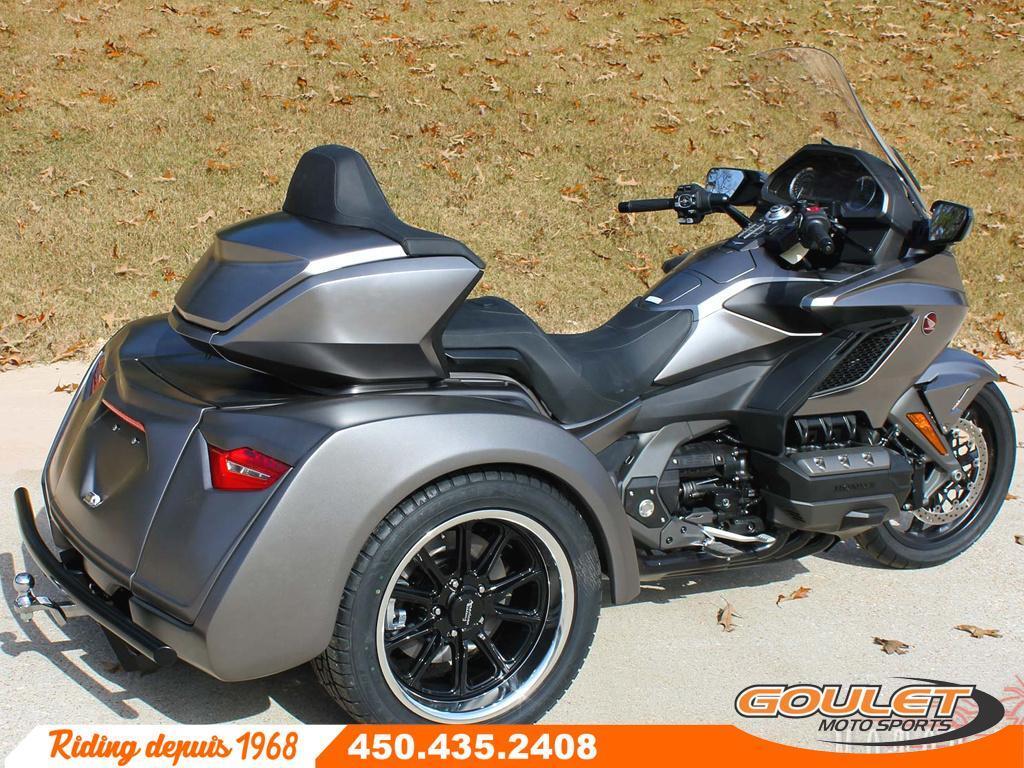 KIT MOTOR TRIKE POUR HONDA GOLDWING TOUR GÉNÉRATION 2018-2026   \*\*\* Prix pour kit installé\*, moto non incluse - contactez-nous pour une soumission sur votre moto \*\*\*   Transforme ton Honda Goldwing GL1800 en trike avec suspension indépendante arrière avec un kit Motor Trike. Le kit Condor IRS de Motor Trike est spécifique aux Goldwing de 2018 et plus, que ce soit le bagger, DCT ou Airbag. C'est le trike le plus confortable et stable grâce à sa suspension indépendante arrière ajustable à l'air. Vivez la meilleure expérience de votre vie. Avec ses lignes de carrosserie audacieuses, parfaitement adaptées à notre suspension arrière indépendante la plus agressive à ce jour, la conversion Condor pour motos Honda Gold Wing vous permet de contrôler votre moto.   Goulet Moto Sports fait des transformations Trike depuis plus de 25 ans avec plus de 200 conversions en trike depuis le début. Nous sommes les experts et les premiers à en faire au Québec.   LE KIT MOTOR TRIKE CONDOR IRS   - Spécifique pour les Honda Goldwing 2018 a 2025  - Suspension Indépendante Arrière (IRS)  - Compresseur à air pour l'ajustement de la suspension  - Plus de 10 cm de débattement de suspension  - Amortisseurs à ressorts progressifs et ballons d'air pour l'ajustement. Commande de suspension visuelle à l'avant  - Système arrière de frein à disque avec kit ABS arrière  - Prise de courant 12 volts dans le coffre  - Peinture et installation inclus  - Avance de fourche (rake kit) de 6 degrés pour faciliter la conduite disponible  - Frein à main disponible pour les modèles manuel (non-inclus)   Plusieurs accessoires en option pour une transformation à ton goût comme les marchepieds color match avec des fog au choix, peinture spéciale, les protèges ailes en cuir, le bumper arrière, un choix de roue (mag) optionnel pour rehausser le look. Tapis de valise, avance de fourche et même la renverse pour faciliter la conduite.   Une transformation Motor Trike est faite sur commande et peut prendre de 3 à 7 semaines pour être complété selon les options et peintures. Tout est fait chez Motor Trike, même la peinture. Goulet Moto Sports s'occupe de la transformation finale et de l'installation sur votre moto de choix. Nous pouvons aussi nous occuper de la certification à la SAAQ. Voir les conditions chez Goulet Moto Sports.   \* Le prix est approximatif et peux varier selon le moment de la commande et les options. Il inclus l'installation et la peinture 1 ton, prêt à partir. Le taux de change, coût de transport, accessoires, tarifs douaniers et autres conditions peuvent affecter le prix.   Possibilité de financement avec plusieurs institutions financières. 2ième chance au crédit disponible. Non combinable à toute autre offre.   Goulet Moto Sports est votre concessionnaire moto depuis 1968. Fier représentant officiel des marques HONDA, APRILIA, MOTO GUZZI, VESPA, PIAGGIO, KTM, NIU, SURRON et URAL pour le grand Montréal. Nous avons un énorme choix de moto usagés inspectées par nos professionnels. 2 adresses pour vous servir, soit à Sainte-Thérèse (450.435.2408) et Saint-Jérôme (450.431.6622).   Goulet Moto Sports ne peut être tenu responsable d'une omission, d'un délai ou d'une erreur de transcription de l'information. Le prix affiché reflète la condition de l'unité. Pour différentes raisons les prix peuvent différer de ceux indiqués en ligne. Les données sont affichées à titre indicatif seulement et ne peuvent être considérées comme une information contractuelle. Nous vous encourageons vivement à nous consulter pour plus de détails avant de vous déplacer. Des frais tels que taxes, immatriculation, administrations, transport, certification, tarif douanier ou taux de change et autres peuvent s'appliquer ou affecter le prix.   Se compare avantageusement a un trike California Sidecar (CSC), Harley Davidson Trike tri glide, BRP Spyder  Garantie: 3 ans  ----------------------  MOTOR TRIKE KIT FOR HONDA GOLDWING TOUR GENERATION 2018-2026   \*\*\* Price for installed kit\*, motorcycle not included - contact us for a quote on your motorcycle\*\*\*   Transform your Honda Goldwing GL1800 into a trike with independent rear suspension with a Motor Trike kit. The Condor IRS kit from Motor Trike is specific to Goldwings from 2018 and up, whether bagger, DCT, or Airbag. It's the most comfortable and stable trike thanks to its air-adjustable independent rear suspension. Have the best ride of your life. With its bold body lines, perfectly matched to our most aggressive independent rear suspension to date, the Condor conversion for Honda Gold Wing motorcycles puts you in control of your bike.   Goulet Moto Sports has been doing trike conversions for over 25 years, with over 200 trike conversions since its inception. We are the experts and the first to do so in Quebec.   THE CONDOR IRS MOTOR TRIKE KIT   - Specific for 2018 to 2025 Honda Goldwings  - Independent Rear Suspension (IRS)  - Air compressor for suspension adjustment  - Over 10 cm of suspension travel  - Progressive spring shock absorbers and air chambers for adjustment. Visual suspension control at the front  - Rear disc brake system with rear ABS kit  - 12-volt power outlet in the trunk  - Painting and installation included  - 6-degree fork rake kit for easier handling  - Parking brake available for manual models (not included)   Several optional accessories for a transformation to your liking, such as color-matched running boards with fog lights of your choice, special paint, leather fender guards, rear bumper, and optional wheel (mag) choices to enhance the look. Luggage mats, fork rake, and even a rear brake sprocket for easier handling.   A Motor Trike conversion is custom-made and can take 3 to 7 weeks to complete depending on the options and paint job. Everything is done at Motor Trike, even the paint job. Goulet Moto Sports handles the final co