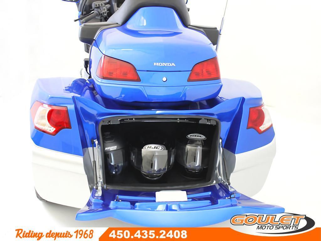 KIT MOTOR TRIKE POUR HONDA GOLDWING GÉNÉRATION 2012-2017   \*\*\* Prix pour kit installé\*, moto non incluse - contactez-nous pour une soumission sur votre moto \*\*\*   Transforme ton Honda Goldwing GL1800 en trike avec suspension indépendante arrière avec un kit Motor Trike. Le kit RAZOR IRS de Motor Trike est spécifique aux Goldwing de 2012 à 2017 mais peux aussi faire sur les GL1800 à partir de 2001. C'est le trike le plus confortable et stable grâce à sa suspension indépendante arrière ajustable à l'air. Exprimez le côté agressif de votre moto Gold Wing avec le Razor : une nouvelle carrosserie au design élégant, associée à la meilleure conversion de suspension arrière indépendante pour la Honda GL 1800.   Goulet Moto Sports fait des transformations Trike depuis plus de 25 ans avec plus de 200 conversions en trike depuis le début. Nous sommes les experts et les premiers à en faire au Québec.   LE KIT MOTOR TRIKE RAZOR IRS   - Spécifique pour les Honda Goldwing 2012 a 2017 (Mais fait aussi sur les 2001-2011)  - Suspension Indépendante Arrière (IRS)  - Compresseur à air pour l'ajustement de la suspension  - Plus de 10 cm de débattement de suspension  - Amortisseurs à ressorts progressifs et ballons d'air pour l'ajustement. Commande de suspension visuelle à l'avant  - Système arrière de frein à disque avec kit ABS arrière  - Prise de courant 12 volts dans le coffre  - Peinture et installation inclus  - Avance de fourche (rake kit) de 4,5 degrés pour faciliter la conduite disponible  - Frein à main inclus   Plusieurs accessoires en option pour une transformation à ton goût comme les marchepieds color match avec des fog au choix, peinture spéciale, les protèges ailes en cuir, le bumper arrière, un choix de roue (mag) optionnel pour rehausser le look. Tapis de valise, avance de fourche et même la renverse pour faciliter la conduite.   Une transformation Motor Trike est faite sur commande et peut prendre de 3 à 7 semaines pour être complété selon les options et peintures. Tout est fait chez Motor Trike, même la peinture. Goulet Moto Sports s'occupe de la transformation finale et de l'installation sur votre moto de choix. Nous pouvons aussi nous occuper de la certification à la SAAQ. Voir les conditions chez Goulet Moto Sports.   \* Le prix est approximatif et peux varier selon le moment de la commande et les options. Il inclus l'installation et la peinture 1 ton, prêt à partir. Le taux de change, coût de transport, accessoires, tarifs douaniers et autres conditions peuvent affecter le prix.   Possibilité de financement avec plusieurs institutions financières. 2ième chance au crédit disponible. Non combinable à toute autre offre.   Goulet Moto Sports est votre concessionnaire moto depuis 1968. Fier représentant officiel des marques HONDA, APRILIA, MOTO GUZZI, VESPA, PIAGGIO, KTM, NIU, SURRON et URAL pour le grand Montréal. Nous avons un énorme choix de moto usagés inspectées par nos professionnels. 2 adresses pour vous servir, soit à Sainte-Thérèse (450.435.2408) et Saint-Jérôme (450.431.6622).   Goulet Moto Sports ne peut être tenu responsable d'une omission, d'un délai ou d'une erreur de transcription de l'information. Le prix affiché reflète la condition de l'unité. Pour différentes raisons les prix peuvent différer de ceux indiqués en ligne. Les données sont affichées à titre indicatif seulement et ne peuvent être considérées comme une information contractuelle. Nous vous encourageons vivement à nous consulter pour plus de détails avant de vous déplacer. Des frais tels que taxes, immatriculation, administrations, transport, certification, tarif douanier ou taux de change et autres peuvent s'appliquer ou affecter le prix.   Se compare avantageusement a un trike California Sidecar (CSC), Harley Davidson Trike tri glide, BRP Spyder  Garantie: 3 ans  ----------------------  MOTOR TRIKE KIT FOR HONDA GOLDWING 2012-2017 GENERATION   \*\*\* Price for installed kit\*, motorcycle not included - contact us for a quote on your motorcycle \*\*\*   Transform your Honda Goldwing GL1800 into a trike with independent rear suspension with a Motor Trike kit. The RAZOR IRS kit from Motor Trike is specific to Goldwings from 2012 to 2017 but can also be used on GL1800s from 2001 onwards. It's the most comfortable and stable trike available thanks to its air-adjustable independent rear suspension. Express the aggressive side of your Gold Wing motorcycle with the Razor: a new, elegantly designed bodywork combined with the best independent rear suspension conversion for the Honda GL 1800.   Goulet Moto Sports has been making trike conversions for over 25 years, with over 200 trike conversions since its inception. We are the experts and the first to do so in Quebec.   THE RAZOR IRS MOTOR TRIKE KIT   - Specific for Honda Goldwings from 2012 to 2017 (but also fits 2001-2011 models)  - Independent Rear Suspension (IRS)  - Air compressor for suspension adjustment  - Over 10 cm of suspension travel  - Progressive spring shock absorbers and air chambers for adjustment. Visual suspension control at the front  - Rear disc brake system with rear ABS kit  - 12-volt power outlet in the trunk  - Painting and installation included  - 4.5-degree fork rake kit for easier handling available  - Parking brake included   Seveal optional accessories for a custom transformation, such as color-matched running boards with fog lights of your choice, special paint, leather fender guards, rear bumper, and optional wheel (mag) options to enhance the look. Luggage mats, fork advance, and even a reverse for easier riding.   A Motor Trike conversion is custom-made and can take 3 to 7 weeks to complete depending on the options and paint. Everything is done at Motor Trike, even the paint. Goulet Moto Sports takes care of the final conversion and installation on your chosen motorcycle. We can also hand