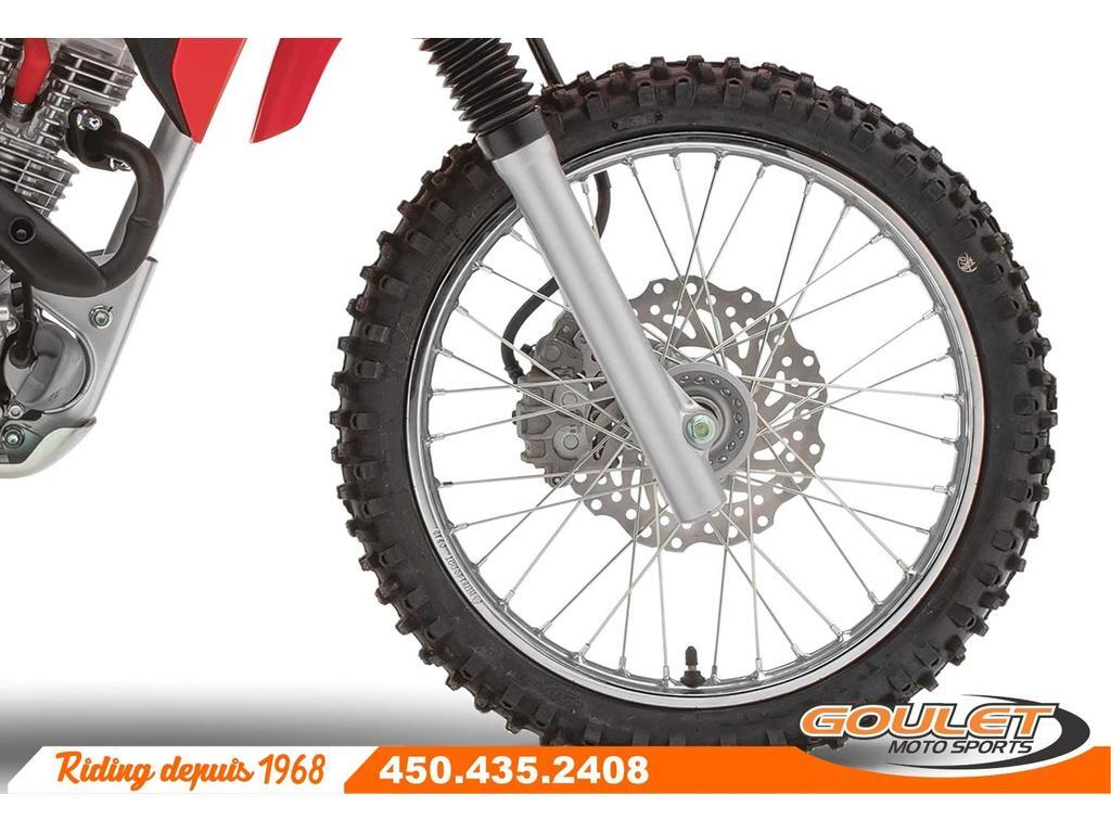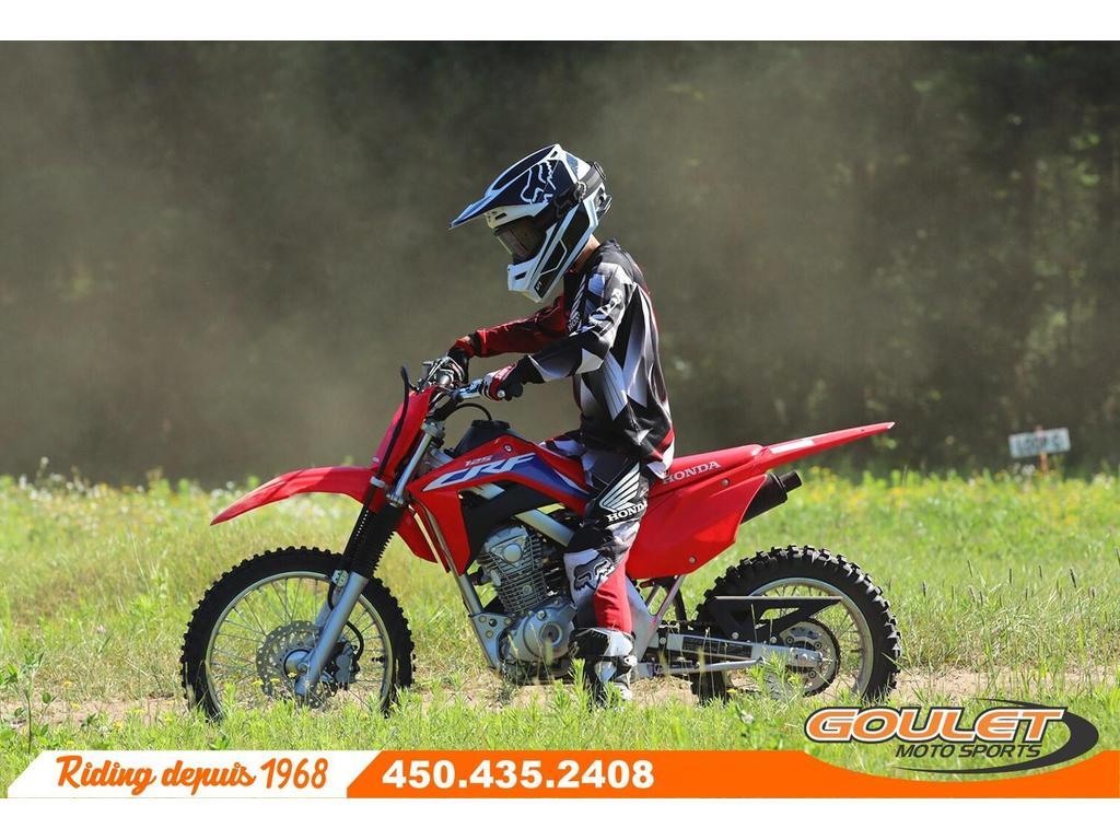 Moto Trail Honda CRF 125F 2023   \*\*\* Rabais de 500$ pour un prix final de 4299$ - Moto neuve avec la garantie complète Honda \*\*\*   La moto CRF125 convient aux jeunes pilotes mais aussi aux adultes plus petit. Cette moto moderne possède un moteur légendaire reconnu pour sa fiabilité et l'injection de carburant élimine les problèmes de carburateur. La transmission à quatre vitesses et l'embrayage conventionnel offrent le contrôle d'une moto pleine grandeur.   - Moteur fiable de 125cc à injection.  - Démarreur électronique  - Transmission manuelle 4 vitesses  - Roue avant de 17pc et roues arrière de 14pc.  - Cadre double poutre en acier  - Frein à disque avant   \*\*\* FRAIS DE TRANSPORT ET PRÉPARATION INCLUS DANS LE PRIX \*\*\*   Cette unité est chez Goulet Moto Sports de Ste-Thérèse. Téléphonez au 450.435.2408   Possibilité de financement avec plusieurs institutions financières. 2ième chance au crédit disponible.   Goulet Moto Sports est votre concessionnaire moto depuis 1968. Fier représentant officiel des marques HONDA, APRILIA, MOTO GUZZI, VESPA, PIAGGIO, KTM, NIU, SURRON et URAL pour le grand Montréal. Nous avons un énorme choix de moto usagés inspectées par nos professionnels. 2 adresses pour vous servir, soit à Sainte-Thérèse (450.435.2408) et Saint-Jérôme (450.431.6622).   Goulet Moto Sports ne peut être tenu responsable d'une omission, d'un délai ou d'une erreur de transcription de l'information. Le prix affiché reflète la condition de l'unité. Pour différentes raisons les prix peuvent différer de ceux indiqués en ligne. Les données sont affichées à titre indicatif seulement et ne peuvent être considérées comme une information contractuelle. Nous vous encourageons vivement à nous consulter pour plus de détails avant de vous déplacer. Des frais tels que taxes, immatriculation, administrations ou autres peuvent s'appliquer.  Essence, Transmission: Manuelle, 4 vitesses, Système de refroidissement: Refroidi à l'air, 1 cylindres, 125.0 CC, Garantie: 6 mois  ----------------------  2023 Honda CRF 125F Trail Motorcycle   \*\*\* $500 discount for a final price of $4,299 - New motorcycle with full Honda warranty \*\*\*   The CRF125 motorcycle is suitable for young riders as well as smaller adults. This modern motorcycle features a legendary engine renowned for its reliability, and fuel injection eliminates carburetor problems. The four-speed transmission and conventional clutch provide the control of a full-size motorcycle.   - Reliable 125cc fuel-injected engine.  - Electronic Starter  - 4-Speed ??Manual Transmission  - 17" Front Wheel and 14" Rear Wheel  - Double Steel Beam Frame  - Front Disc Brake   \*\*\* TRANSPORTATION AND PREPARATION INCLUDED IN THE PRICE \*\*\*   This unit is at Goulet Moto Sports in Ste-Thérèse. Call 450.435.2408.   Financing available with several financial institutions. Second chance credit available.   Goulet Moto Sports has been your motorcycle dealer since 1968. We are a proud official representative of the HONDA, APRILIA, MOTO GUZZI, VESPA, PIAGGIO, KTM, NIU, SURRON, and URAL brands in Greater Montreal. We have a huge selection of used motorcycles inspected by our professionals. We have two locations to serve you: Sainte-Thérèse (450.435.2408) and Saint-Jérôme (450.431.6622).   Goulet Moto Sports cannot be held responsible for any omission, delay, or transcription error. The price displayed reflects the condition of the unit. For various reasons, prices may differ from those indicated online. The data displayed is for informational purposes only and should not be considered contractual information. We strongly encourage you to contact us for more details before visiting us. Fees such as taxes, registration, administration, and other charges may apply.  Gasoline, Transmission: Manual, 4 speeds, Cooling System: Air cooling, 1 cylinders, 125.0 CC, Warranty: 6 mois