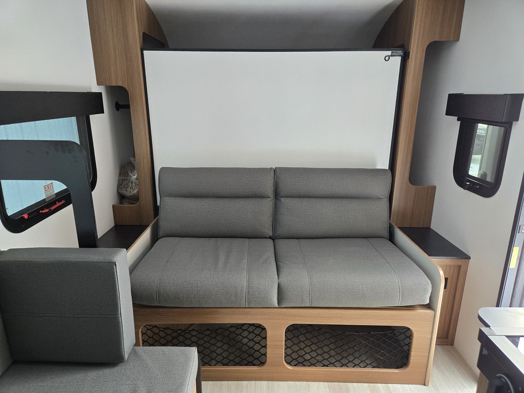 Belle petite roulotte de 15 pieds de plancher, idéale pour un couple. Avec son style original et unique vous ferez des jaloux assurément. Néons extérieurs LED de couleurs verts sur les murs latéraux ainsi que sur le devant, et derrière des néons rouges, vous ne passerez pas inaperçue. Hauteur 10 pieds 5 pouces. Taille des pneus ST235/75R15D tout terrain. Nombre de réservoirs de propane 2. Toilette allongée en porcelaine à chasse d'eau au pied. Pommeau de douche Oxygenics Fury amélioré et de plus grande circonférence que les modèles régulièrement installés. Chauffe-eau Suburban sans réservoir de 42 000 BTU vous procurant de l'eau chaude sur demande et la possibilité d'augmenter ou de réduire la température de votre eau chaude.. Éclairage bande LED intérieur avec interrupteur gradateur. Foyer électrique, store opaque noir. FINANCEMENT DISPONIBLE SUR PLACE ET POSSIBILITÉ D'ACHAT D'UNE GARANTIE PROLONGÉE.