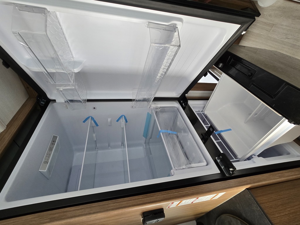 Options : Convertisseur de courant continu, Réservoir de propane, Climatiseur au plafond, Roue de secours, Douche extérieure, Douche, Toilette, Lit queen-size, Canapé-lit, Prise électrique, Téléviseur, Prise cable, Micro-onde, Cuisinière, Hotte, Auvent, Chauffe-eau à allumage direct