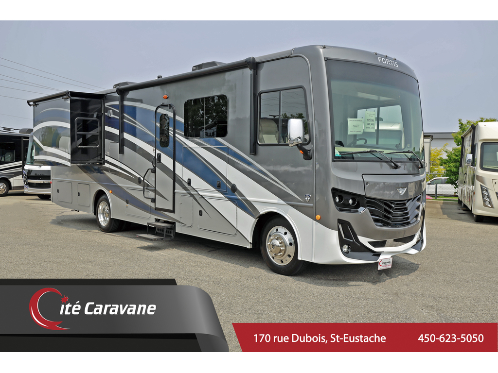 Fleetwood Fortis 33HB 2022 2 extensions Peinture complete : Battle Axe + boiserie English Chestnut mesure environ 35 pieds longueur et est doté d'un cockpit de haute technologie comprenant une radio HD entièrement équipée. Ford V8 de 7,3 L, attelage de 5000 livres, . De plus, ses roues Alcoa de 22,5 pouces et ses amortisseurs Bilstein® offrent des aventures fluides et sans stress. Les options incluent la peinture extérieure pour toute la carrosserie, une laveuse/sécheuse empilable, un onduleur de 2 000 watts, un générateur de 5 500 watts, un réservoir d'eau douce de 100 gallons, une marche d'entrée électrique, un système de nivellement, un auvent électrique, 2 climatiseurs de 13 500 BTU, un lit suspendu, etc., etc. www.citecaravane.com 450-623-5050 170 rue dubois , St-eustache J7P 4W9 Fleetwood Fortis 33HB 2 slides Full body paint : Battle Axe + interior English Chestnut is approximately 35 feet in length loaded with a high-tech cockpit including a fully-featured HD radio Ford V8 7.3L , 5000 pounds hitch . Plus its Alcoa wheels on 22.5 inch and Bilstein® shocks offer smooth, stress-free adventures. Options include the full body paint exterior, stackable washer/dryer , 2000 watt inverter , 5500 watt generator , 100 gallon fresh water tank , electric entry step , leveling system , electric awning , 2x 13,500BTU A/C , Overhead bed etc etc etc www.citecaravane.com 450-623-5050 170 rue dubois , St-eustache J7P 4W9