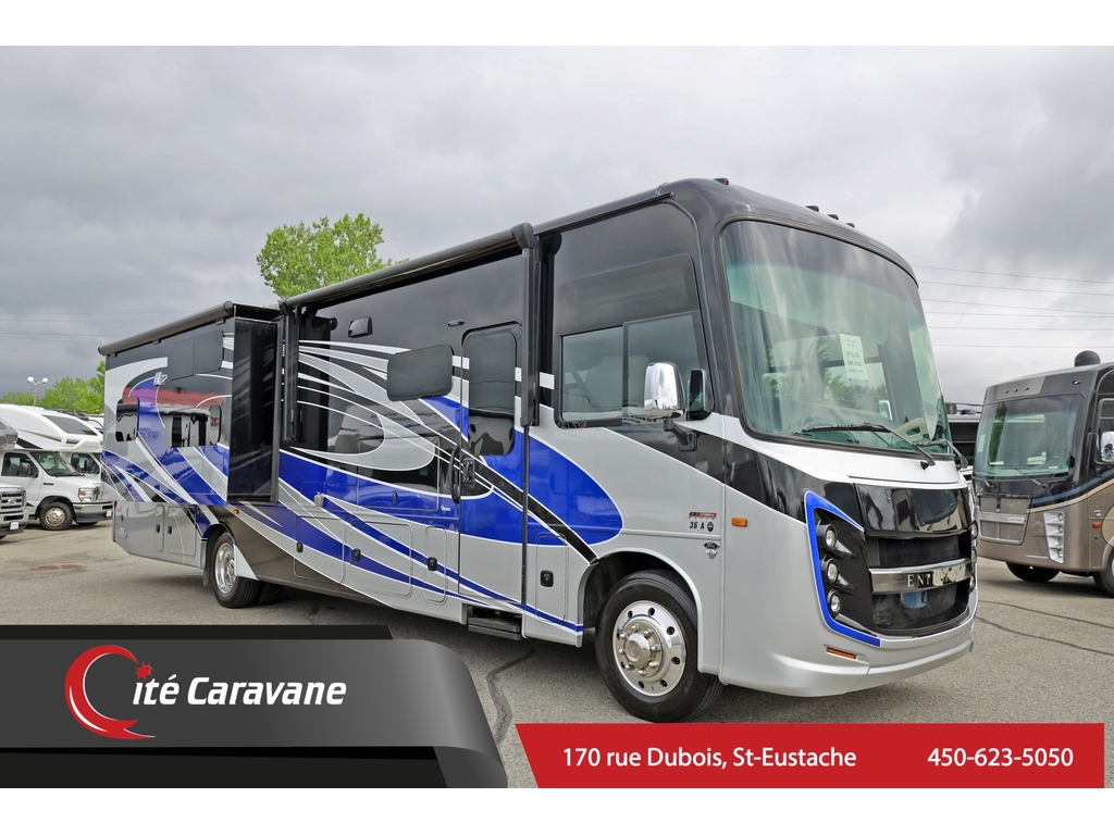 Réduction de prix 179 900$ ! PRIX reg 185 900$! Entegra Coach Vision XL 36A Bunk beds + 2 salle de bain + Peinture complète + Lit King + Laveuse Secheuse L'Entergra Coach est construit dans un esprit résidentiel et vous attend pour votre prochaine aventure. Ce magnifique VR dispose d'un lit king-size et d'un aménagement confortable et spacieux. Ce véhicule récréatif incroyable offre un ensemble de valeur client qui comprend un générateur de 5,5 kW, un service de 50 ampères, des vérins hydrauliques automatiques, un système de surveillance à 3 caméras, un auvent électrique avec lumières LED, des fenêtres sans cadre, stores à rouleau, toppers coulissants et comptoirs de cuisine et de salle de bain à surface solide. L'équipement en option comprend un lit superposé à l'avant avec une capacité de 750 livres, un four encastré en acier inoxydable et une laveuse/sécheuse. La liste impressionnante de caractéristiques standard de Vision XL qui la distinguent vraiment de la concurrence, des compartiments de rangement verrouillables, Peinture complète, un pare-brise panoramique, four à micro-ondes en acier inoxydable, toit en fibre de verre couronné sans soudure, onduleur, guides de tiroir à roulement à billes, grand réfrigérateur résidentiel, grande douche et bien plus encore. www.citecaravane.com 450-623-5050 170 Rue dubois st-eustache ! -------------------------------------------------------------------------------------------------------------------------------------------------------------------------------------------------------------------------------------------------- SPRING SPECIAL !! SAVE BIG !! Entegra Coach Vision XL 36A bunk beds + 2 full baths. Full paint + King size bed + Washer and Dryer The Entegra Coach is built with a residential feel will have you longing for your next adventure. This beautiful RV features a king size bed and a comfortable, spacious layout. This amazing RV boasts Customer Value Package which features a 5.5KW generator, 50 amp service, automatic hydraulic leveling jacks, 3 camera monitoring system, electric awning with LED lights, exterior entertainment center, frameless windows, infotainment center, LED TV in living room, roller shades, slideout toppers and solid surface kitchen and bathroom countertops. Optional equipment includes a front overhead bunk with 750-pound rating, stainless built-in oven and combination washer/dryer . The Entegra Vision XL s impressive list of standard features that truly set it apart from the competition include Entegra's, lockable slam latch storage compartments, one-piece fiberglass front and rear caps, panoramic windshield with power shade, 6-way power driver's seat, stainless convection microwave, seamless crowned fiberglass roof, inverter, ball-bearing drawer guides, large residential refrigerator, large shower and much more. www.citecaravane.com 450-623-5050 170 Rue dubois St-eustache !