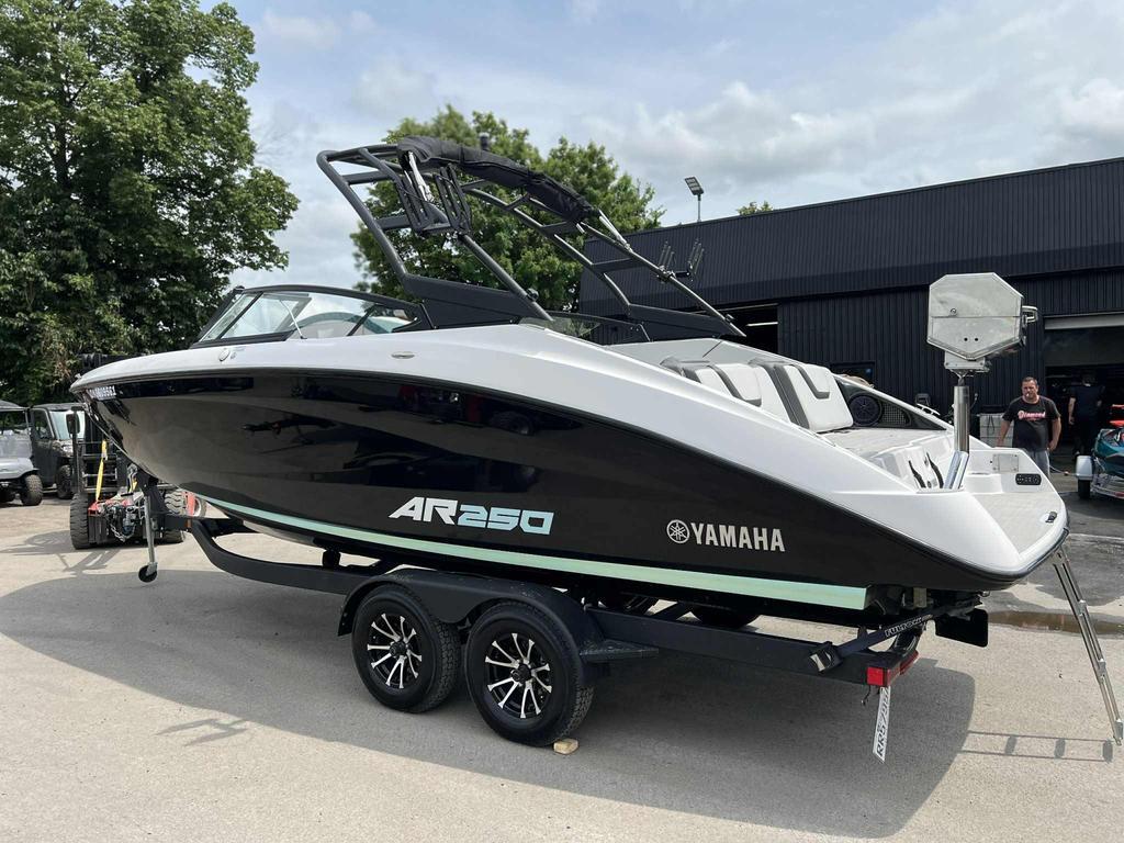 2023 YAMAHA AR 250   PRIX PLUS TAXES   RARE ET SUPERBE BATEAU YAMAHA DE LA SÉRIE AR COMBINANT UNE GRANDE CAPACITÉ D'ACCUEIL (12 PASSAGERS) ET D'ÉQUIPEMENTS MODERNES   24,6 PIEDS DE LONG,8,6 PIEDS DE LARGE   HYPER SPACIEUX   98 HEURES   12 PERSONNES   2 MOTEURS YAMAHA H.O 200HP CHAQUE 400HP COMBINÉ   TOUR A WAKE RABATTABLE EN ALUMINIUM   TABLE INSTALLÉE AVANT ET ARRIERE   GRAND COMPARTIMENT SKI/BOW   SYSTEME AUDIO 6 HAUTS-PARLEURS AVEC COMMANDE STÉRÉO A L'ARRIERE   PLATEFORME DE BAIGNADE INTÉGRÉE AVEC ÉCHELLE   ÉCRAN 7"AVEC CARTE GPS   TOILE DE TRANSPORT   NO WAKE MODE ET CRUISE ASSIST SILENT CRUISE   TOIT BIMINI   BBQ   TAPIS SNAP   4021LBS   REMORQUE DOUBLE ESSIEUX A FREIN INCLUSE   TOUTES NOS UNITÉES SONT MINUTIEUSEMENT CHOISIES, INSPECTÉES ET GARANTIES   FINANCEMENT DESJARDINS, NATIONALE OU SCOTIA    POUR CONFIRMER LA DISPONIBILITÉ OU INFOS SVP COMMUNIQUER AVEC LE DÉPARTEMENT DES VENTES AU 450-413-1515 OU TEXTO AU 514-213-3163   FRAIS 99$ RDPRM ET 119$+TX PERMIS D'EMBARCATION
