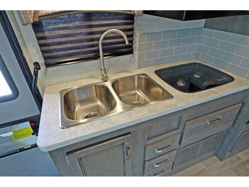 * disponible sur commande - available on order * Forest River Sunseeker 2440 2 extensions CLASSE C/B+ Skirt paint, Tissu : Stone, boiseries : Vermont ...