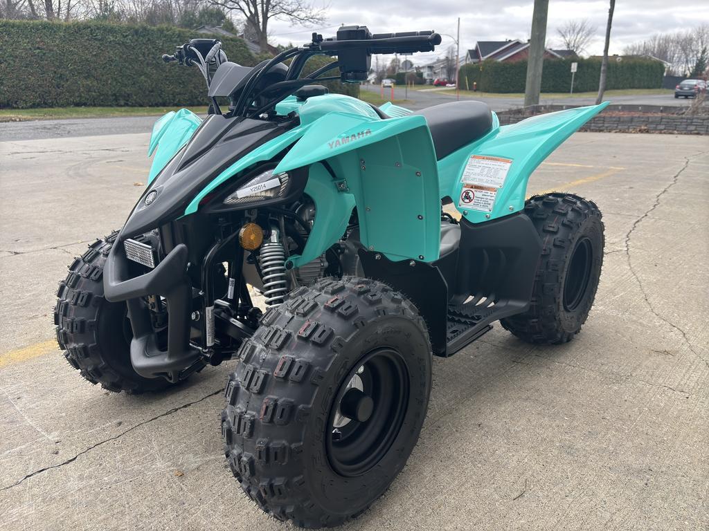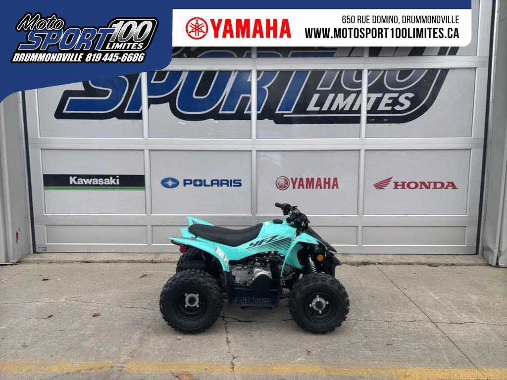 Yamaha YFZ50 2025 : le VTT idéal pour les jeunes pilotes   Le Yamaha YFZ50 2025 est parfaitement conçu pour initier les jeunes pilotes, dès l'âge de 6 ans, avec sécurité et confiance. Doté de fonctionnalités de sécurité parentale, d'un démarrage électrique et d'une transmission automatique, ce modèle allie simplicité et fiabilité.   Caractéristiques principales :   Moteur 4 temps de 49,4 cm³ avec simple arbre à cames en tête (SACT), 2 soupapes et refroidissement par air, pour une puissance douce et maîtrisée   Démarreur électrique à bouton-poussoir complété par un démarreur auxiliaire au pied   Transmission à variation continue (TVC) entièrement automatique pour une conduite facile   Carburateur Mikuni VM12 pour des performances régulières   Allumage CDI sans entretien, assurant une longévité maximale   Disponible chez Moto Sport 100 Limites à Drummondville. Appelez-nous au (819) 445-6686 !