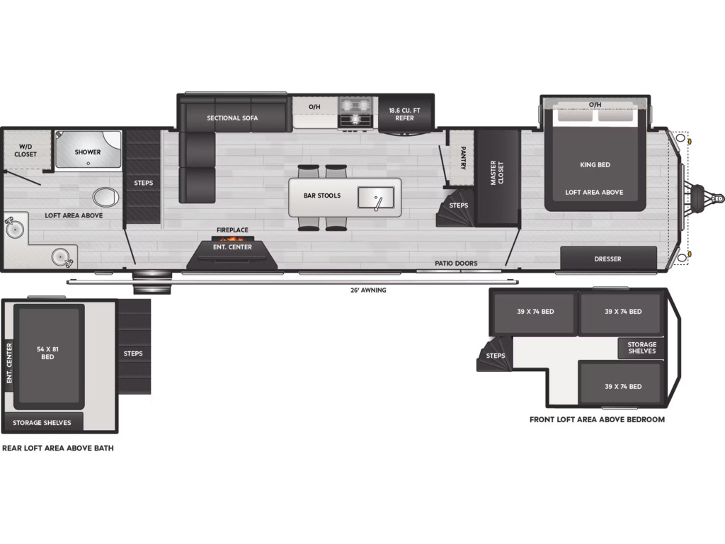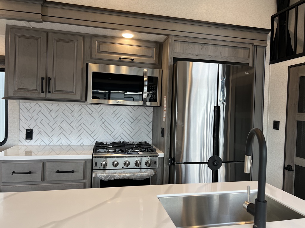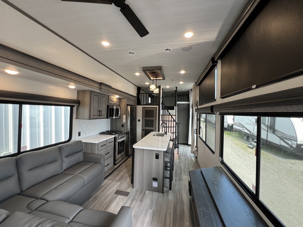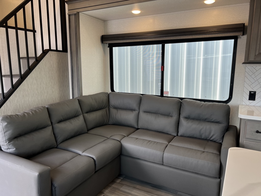 Cette magnifique roulotte de parc allie modernité et confort. Hauts plafonds de 8 pieds : sensation d'ouverture et de luminosité Chambre avant avec lit king Double loft : parfait pour les familles et les invités Salon et cuisine combinés : canapé sectionnel, îlot avec quatre tabourets de bar Grandes fenestrations et porte patio : accès facile, vues magnifiques et air frais Salle de bains spacieuse : 2 lavabos, grande douche avec siège, placard pour laveuse/sécheuse Vous vous sentirez chez vous dans cette Residence exceptionnelle! Intéressé(e) ? Venez voir ! Rien de mieux qu'une visite en personne pour solidifier votre opinion. Chez Roulottes Turmel, notre équipe motivée et dévouée saura vous rassurer et vous aider dans vos recherches. Notre but est d'offrir le meilleur service-conseil relatif aux véhicules récréatifs ainsi qu'aux produits de qualité s'y rattachant. Nous saurons trouver ce qui vous conviendra pour rendre vos futures expériences de voyage et de camping inoubliables. *L'unité en stock pourrait légèrement différer des images présentées.
