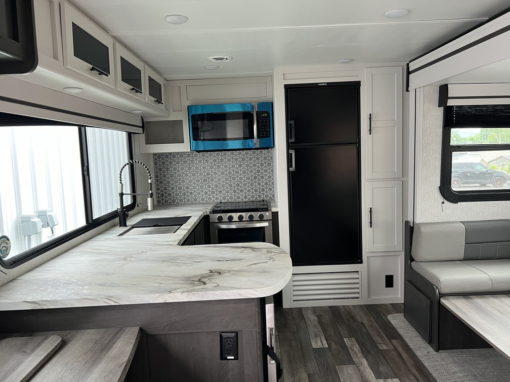 Roulotte moderne et lumineuse Peut accueillir jusqu'à 4 personnes Chambre fermée à l'avant avec lit King Dinette en U convertible Cuisine équipée Salle de bain complète Beaucoup de rangement La Cruiser Aire 28RKS est une caravane de voyage spacieuse et bien équipée, conçue pour offrir confort et fonctionnalité. Intéressé(e) ? Venez voir ! Rien de mieux qu'une visite en personne pour solidifier votre opinion. Chez Roulottes Turmel, notre équipe motivée et dévouée saura vous rassurer et vous aider dans vos recherches. Notre but est d'offrir le meilleur service-conseil relatif aux véhicules récréatifs ainsi qu'aux produits de qualité s'y rattachant. Nous saurons trouver ce qui vous conviendra pour rendre vos futures expériences de voyage et de camping inoubliables. *L'unité en stock pourrait légèrement différer des images présentées.