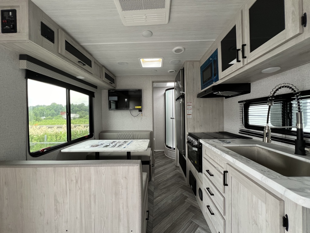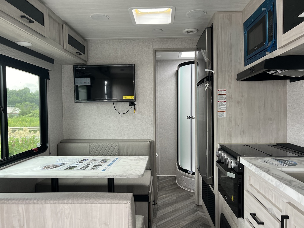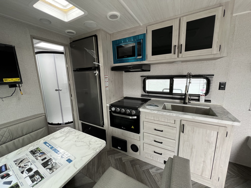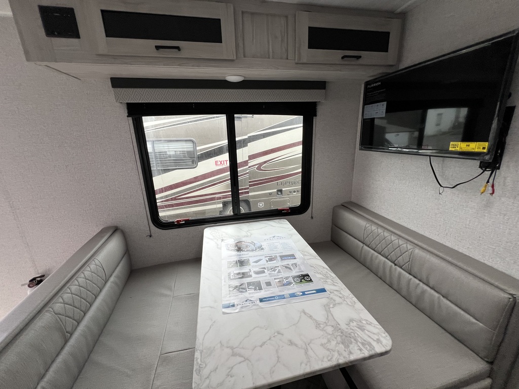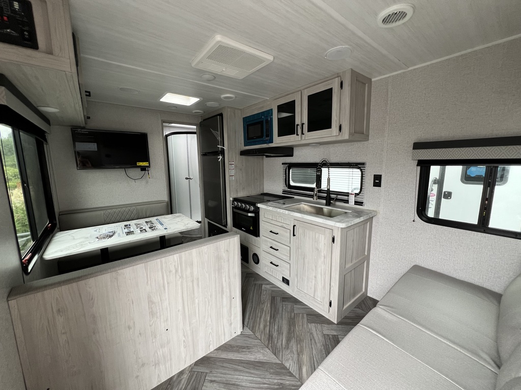 Peut accueillir jusqu'à 6 personnes Chambre fermée à l’avant avec lit king Canapé-lit Dinette convertible Salle de bain spacieuse Cuisine équipée Nombreux espace de rangements Idéale pour créer des souvenirs inoubliables en famille ou en couple lors de vos escapades. Intéressé(e) ? Venez voir ! Rien de mieux qu'une visite en personne pour solidifier votre opinion. Chez Roulottes Turmel, notre équipe motivée et dévouée saura vous rassurer et vous aider dans vos recherches. Notre but est d'offrir le meilleur service-conseil relatif aux véhicules récréatifs ainsi qu'aux produits de qualité s'y rattachant. Nous saurons trouver ce qui vous conviendra pour rendre vos futures expériences de voyage et de camping inoubliables. *L'unité en stock pourrait légèrement différer des images présentées.