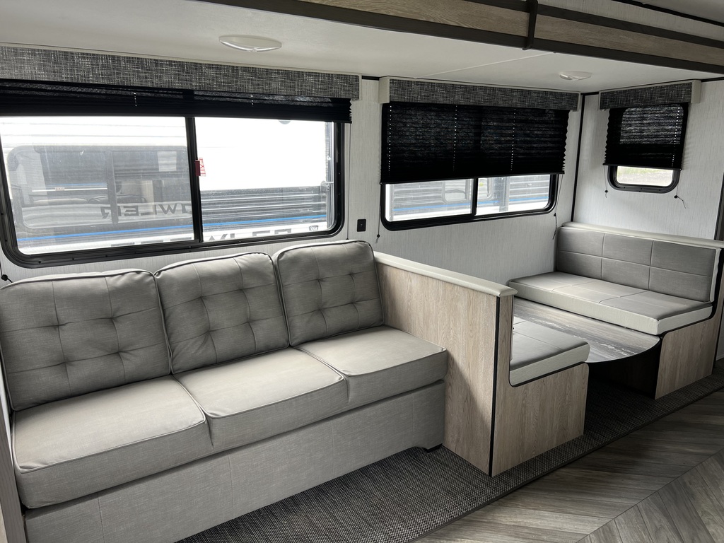Roulotte spacieuse et moderne Espace de vie convivial Peut accueillir jusqu'à 10 personnes 2 chambres : Une à l'arrière avec 2 lits doubles superposés Une à l'avant avec lit queen Une salle de bain complète Une deuxième toilette avec lavabo dans la chambre arrière Beaucoup de rangement Ces caractéristiques font de la Prowler 315BH un choix idéal pour ceux qui cherchent le confort et la fonctionnalité d'une maison sur roues. Parfaite pour les aventures en famille ou entre amis. Intéressé(e) ? Venez voir ! Rien de mieux qu'une visite en personne pour solidifier votre opinion. Chez Roulottes Turmel, notre équipe motivée et dévouée saura vous rassurer et vous aider dans vos recherches. Notre but est d'offrir le meilleur service-conseil relatif aux véhicules récréatifs ainsi qu'aux produits de qualité s'y rattachant. Nous saurons trouver ce qui vous conviendra pour rendre vos futures expériences de voyage et de camping inoubliables. *L'unité en stock pourrait légèrement différer des images présentées.