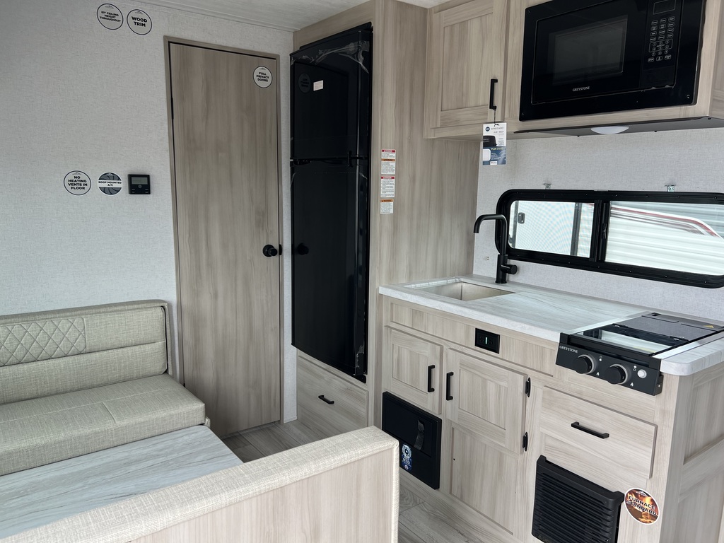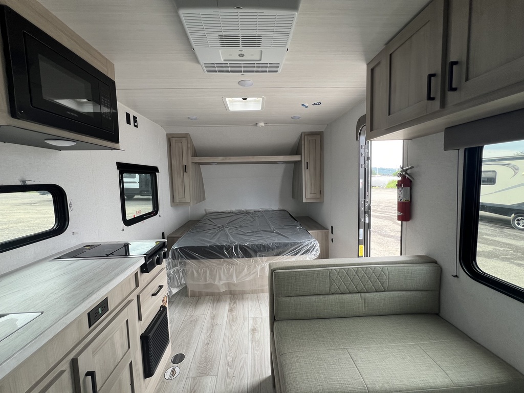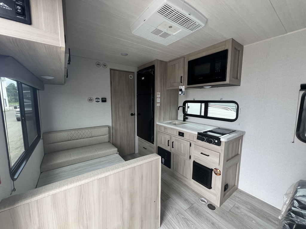 Magnifique petite roulotte Légère et compacte Peut accueillir jusqu'à 4 personnes Lit Queen à l'avant Placards de chaque côté du lit Dinette pouvant être convertie en lit supplémentaire Beaucoup d’espace de rangement Grande fenêtre apportant luminosité et vue sur l'extérieur Cuisine équipée Réfrigérateur et congélateur Micro-ondes Plaque de cuisson Salle de bain complète La Della Terra 160RBSLE combine la fonctionnalité avec le confort, offrant un espace de vie optimisé dans une taille compacte. C'est un excellent choix pour ceux qui cherchent une roulotte légère mais bien équipée. Intéressé(e) ? Venez voir ! Rien de mieux qu'une visite en personne pour solidifier votre opinion. Chez Roulottes Turmel, notre équipe motivée et dévouée saura vous rassurer et vous aider dans vos recherches. Notre but est d'offrir le meilleur service-conseil relatif aux véhicules récréatifs ainsi qu'aux produits de qualité s'y rattachant. Nous saurons trouver ce qui vous conviendra pour rendre vos futures expériences de voyage et de camping inoubliables. *L'unité en stock pourrait légèrement différer des images présentées.
