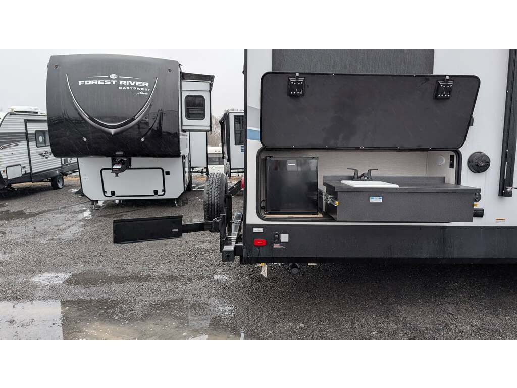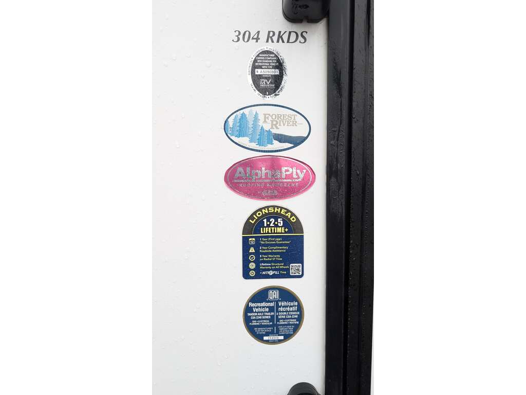 Options : Réservoir de propane, Climatiseur au plafond, Vérin stabilisateur, Roue de secours, Douche extérieure, Douche, Toilette, Lit queen-size, ...
