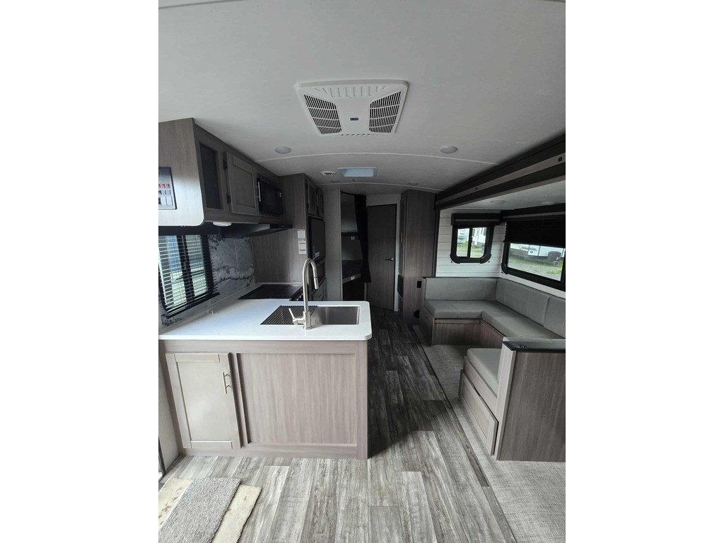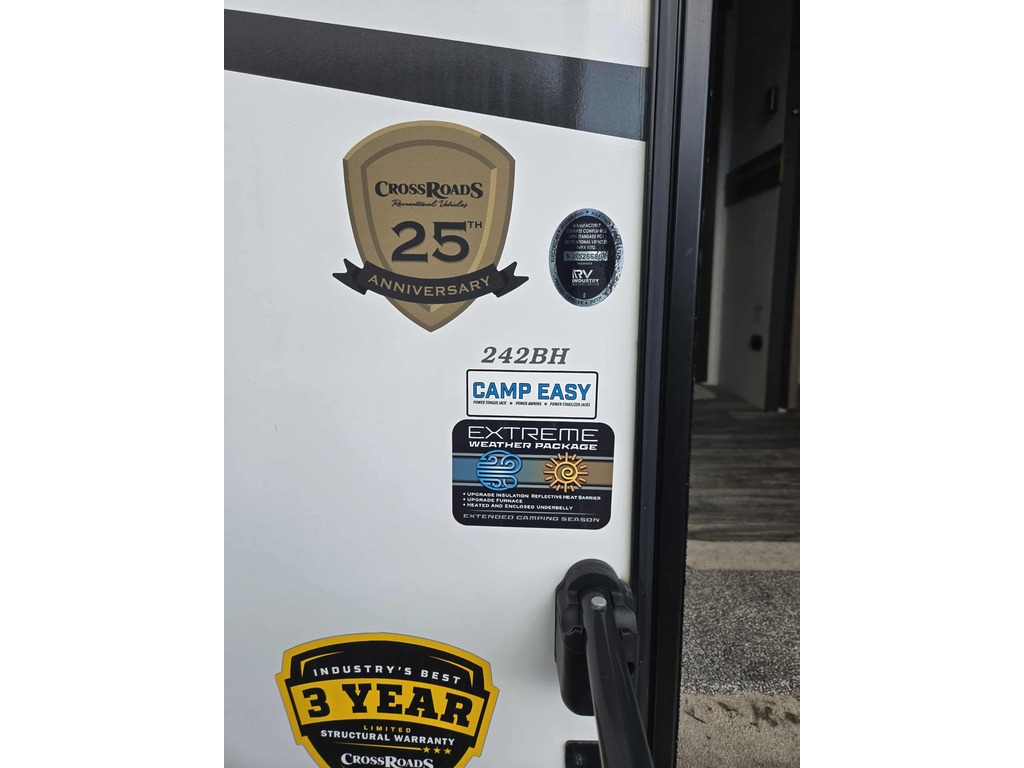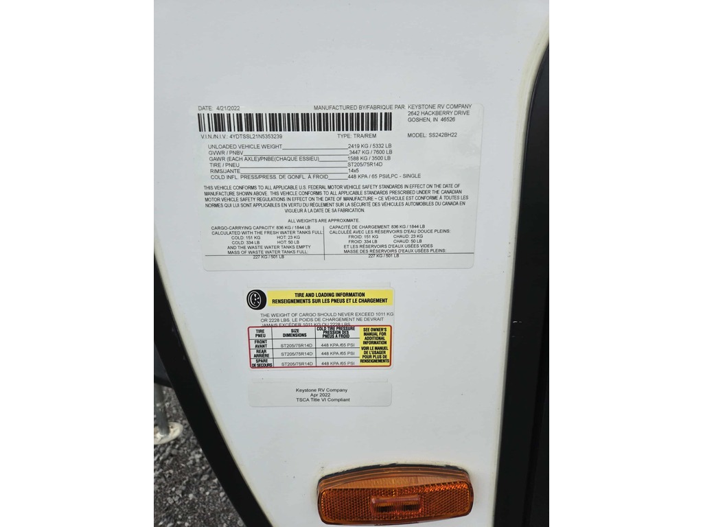 Roulotte Sunset Trail 242BH 2022 neuve – Familiale, légère et polyvalente Découvrez la roulotte Sunset Trail 242BH 2022 neuve, une caravane de voyage idéale pour les familles à la recherche de confort, de fonctionnalité et de style pour leurs escapades en camping. Avec une longueur de 28,9 pieds et un poids léger de 5 253 lbs, cette roulotte est facile à remorquer avec la plupart des VUS et camionnettes, offrant une expérience de camping sans compromis. Caractéristiques principales : Capacité de couchage : Jusqu’à 8 personnes, parfaite pour les familles nombreuses. Disposition familiale : 2 lits superposés doubles à l’arrière, lit king spacieux à l’avant avec matelas en mousse mémoire pour un confort optimal. Espace de vie convivial : Banquette convertible en lit double, table à dîner transformable, et finition intérieure haut de gamme avec plafonds arrondis pour une sensation d’espace. Cuisine extérieure complète : Équipée d’un réfrigérateur gaz/électrique, d’un grill extérieur et d’un évier, idéale pour les repas en plein air. Confort moderne : Climatiseur de 15 000 BTU, auvent électrique avec éclairage LED, réfrigérateur spacieux, et système audio Bluetooth avec haut-parleurs extérieurs. Construction robuste : Châssis en aluminium léger, suspension Tor-Flex pour une conduite fluide, finition extérieure en fibre de verre avec gel coat lustré, et front cap moulé pour une meilleure aérodynamique. Équipements pratiques : Jantes en aluminium élégantes, caméra de recul précâblée, chauffe-eau 6 gallons DSI, et 2 batteries neuves incluses. Avantages pour le camping : La Sunset Trail 242BH 2022 est conçue pour offrir une expérience de camping quatre saisons grâce à son isolation supérieure optionnelle et son système de chauffage performant. Sa structure légère et durable en fait un choix idéal pour les aventures en famille, que ce soit pour des escapades d’un week-end ou des voyages prolongés. Les options comme le support à vélo et la housse de remisage hivernal ajoutent une touche de praticité pour les campeurs aguerris. Pourquoi choisir la Sunset Trail 242BH 2022 ?Cette roulotte neuve combine luxe, légèreté et commodités modernes à un prix compétitif. Son design soigné et ses équipements haut de gamme en font un choix parfait pour les familles cherchant à créer des souvenirs inoubliables en camping. Disponible dès maintenant à [Nom de votre concessionnaire/site web], venez découvrir ce modèle à [Ville, Province] ou contactez-nous pour une soumission personnalisée. Pour plus d’informations ou pour planifier une visite, contactez-nous dès aujourd’hui ! [Insérez vos coordonnées ou lien vers votre site web].