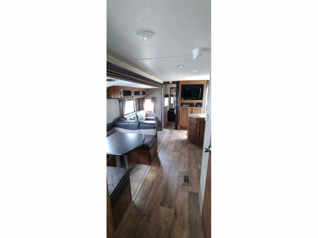 Forest River Salem 30KQBSS 2016 : Votre roulotte familiale pour des aventures inoubliables ! Découvrez cette roulotte de voyage spacieuse, idéale pour les grandes familles ou groupes cherchant confort et commodité. Avec une longueur de 33 pieds 6 pouces et un poids à sec d’environ 6944 lb, la Salem 30KQBSS 2016 est équipée de trois extensions (slideouts) pour un espace de vie généreux. Elle accueille jusqu’à 9 personnes, avec un lit queen à l’avant, des lits superposés à l’arrière, une dinette en U convertible et un sofa-lit.La cuisine moderne inclut un réfrigérateur 6 pi³, une cuisinière 3 brûleurs avec four, un micro-ondes et un évier double. La salle de bain complète offre une douche, une toilette et un lavabo. Profitez d’une climatisation 13 500 BTU, d’un chauffe-eau de 6 gallons, d’un auvent électrique de 16 pieds et d’un compartiment de rangement pass-through. Les commodités incluent des haut-parleurs extérieurs, un système stéréo AM/FM/CD, une construction robuste avec châssis en acier et des réservoirs (40 gal. eau fraîche, 32 gal. eaux grises, 32 gal. eaux noires) pour une autonomie prolongée.Parfaite pour le camping familial, les escapades au bord du lac ou les séjours en nature, la Forest River Salem 30KQBSS 2016 allie espace, durabilité et prix abordable