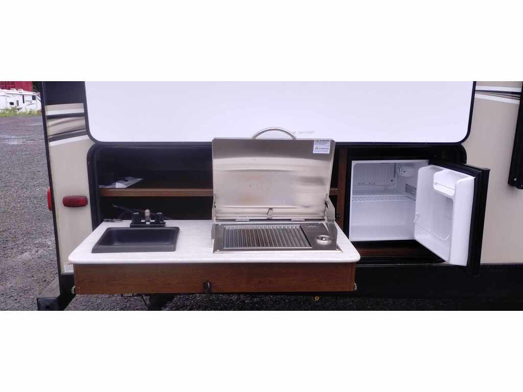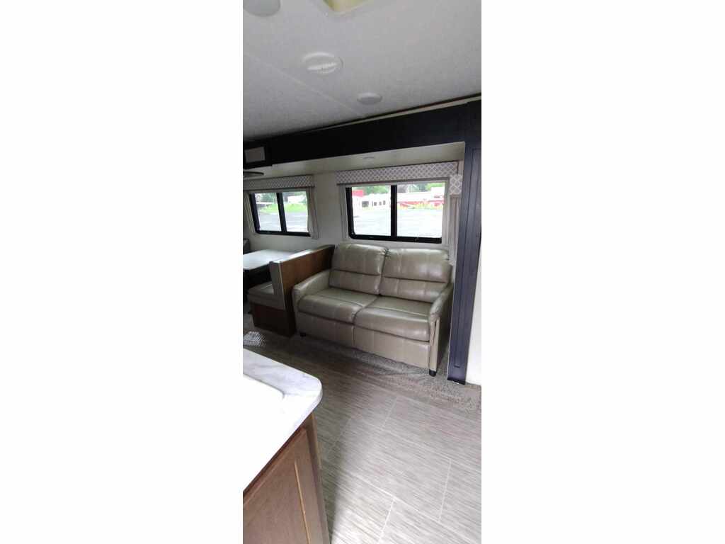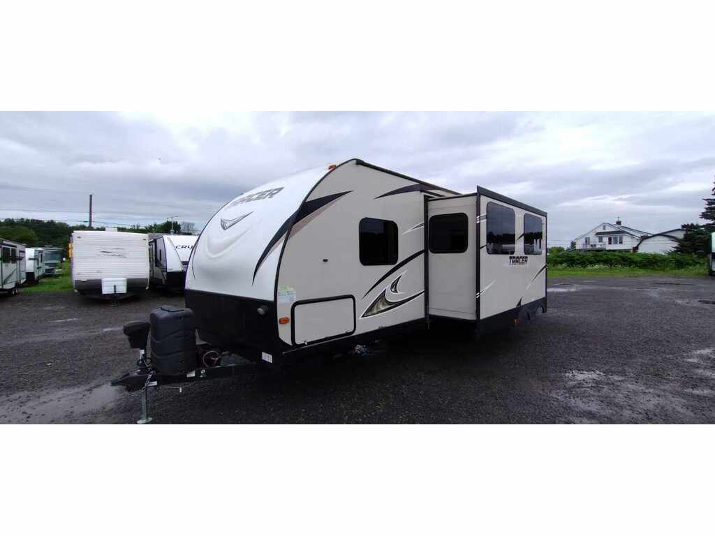 Prime Time Tracer 291BR 2018 : Votre roulotte familiale pour des escapades mémorables ! Découvrez cette roulotte de voyage spacieuse, parfaite pour les familles ou groupes cherchant confort et fonctionnalité. Avec une longueur de 34 pieds 1 pouce et un poids à sec d’environ 7088 lb, la Tracer 291BR 2018 offre un agencement bunkhouse avec une extension (slideout). Elle accueille jusqu’à 8 personnes, avec des lits superposés à l’arrière, un lit queen à l’avant, une dinette convertible et un sofa-lit.La cuisine moderne inclut un réfrigérateur 8 pi³, une cuisinière 3 brûleurs avec four, un micro-ondes et un évier double. La salle de bain complète comprend une douche, une toilette et un lavabo. Profitez d’une climatisation 15 000 BTU, d’un chauffe-eau de 6 gallons, d’un auvent électrique de 18 pieds et d’un grand rangement pass-through. Les commodités incluent des haut-parleurs extérieurs Bluetooth, une télévision LED, une construction en aluminium robuste et des réservoirs (48 gal. eau fraîche, 34 gal. eaux grises, 34 gal. eaux noires) pour une autonomie prolongée.Idéale pour le camping familial, les séjours en nature ou les aventures au bord du lac, la Prime Time Tracer 291BR 2018 combine espace, qualité et prix abordable
