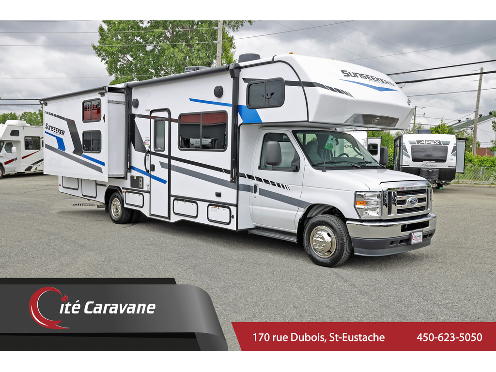Forest River Sunseeker 3250 2 extensions CLASSE C avec lits superposé + crics hydraulics Tissu : Lava, boiseries :River teak : Ford V-18, Prise 30AMP , chauffe-eau 6 gallons , chauffage 30,000BTU , A/C au toit 13.5BTU canalisé , murs de 2, fini gel-coat , toit en fibre de verre , auvent électrique , hitch de 7500lbs,TV , frigidaire 10 pieds cube , tiroirs styles résidentiels , cuisinière a trois bruleur , TV, stores de nuit , plafond de 7 pieds , génératrice de 4000watts onan , micro-onde , sièges avant en tissue , couvert en fibre de verre , matelas queen , Prélart a grandeur Beauflor , antenne digitale, comptoirs de luxe , camera de recule . 1474$+tx/MOIS www.citecaravane.com 450-623-5050 170 RUE DUBOIS , ST-EUSTACHE, SUR LE BORD DE LA 640! UNE ENTREPRISE FAMILIALE A VOTRE SERVICE DEPUIS 1973 ! , DÉPOSITAIRE NUMÉRO 1 FOREST RIVER SUNSEEKER ! LE SPÉCIALISTE DU VR AU QUÉBEC Forest River Sunseeker 3250 2 slides CLASS C with bunk beds + hydraulic jacks , fabric : Lava wood : River teak, Ford V-8 , 30AMP , 6 gallon water heater , 30,000BTU heater , 13.5BTU ducted roof A/C , , 2inch thick walls , gel-coat exterior , fiberglass roof , electric awning , 7500lbs hitch , TV , 10 cubic feet fridge , residential style drawers , 3 range burner , micro-wave , night shades , 7 feet high ceilings , 4000watts Onan generator, , cloth front seats ,wood refrigerator panels ,fiberglass front cap , queen matress , Beauflor linoleum throughout , Digital Antenna ,Upgraded countertops , back up camera . 1474$+txs/MONTH www.citecaravane.com 450-623-5050 ! CALL US TODAY ! Cité Caravane, 170 rue Dubois in Saint-Eustache, adjacent to the 640 highway. A FAMILY OWNED BUISNESS SINCE 1973 ! QUÉBEC s RV SPECIALIST !