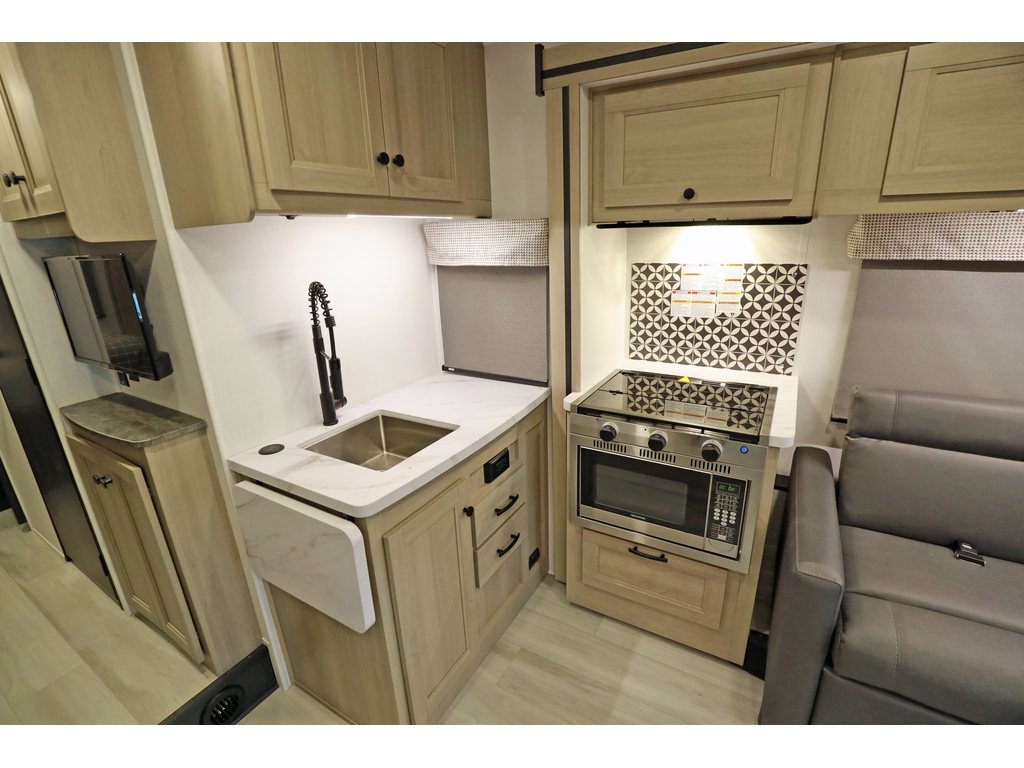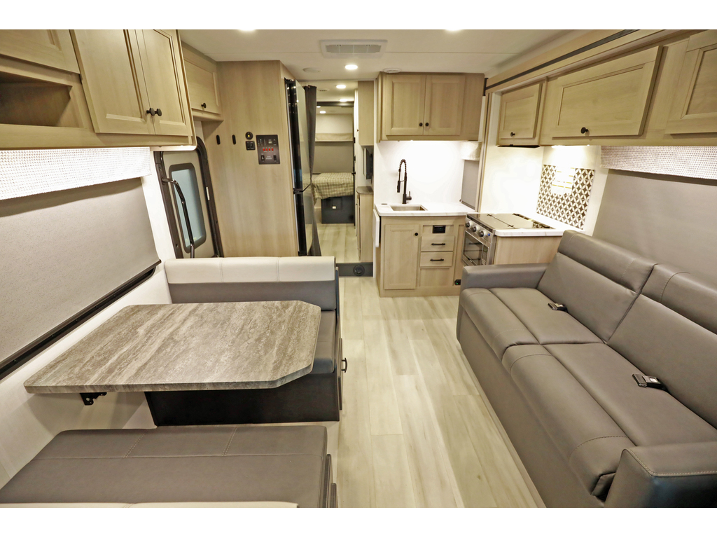 * disponible sur commande - available on order * Forest River Sunseeker 2440 2 extensions CLASSE C/B+ Skirt paint, Tissu : Stone, boiseries : Vermont ...