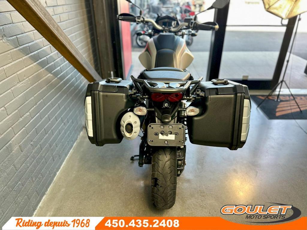 MOTO GUZZI V85TT TRAVEL  \*\*\* Édition Travel Bien équipé, moto super propre. Parfait pour l'aventure - PRIX RÉDUIT À 11995$ \*\*\*   Le Moto Guzzi V85 TT Travel 2023 est une moto adventure-tourer polyvalente qui marie parfaitement le style rétro unique de Moto Guzzi avec la technologie moderne. Conçue pour les grands voyages comme pour les escapades hors des sentiers battus, elle est animée par un moteur bicylindre en V transversal de 853 cc, robuste et fiable, offrant un couple généreux et une expérience de conduite authentique.   ? Édition Travel équipé de valises latérales, parebrise haut, center stand, poignées chauffantes.   - Moteur bicylindre en V transversal de 853 cc, refroidi par air et huile, offrant puissance et couple idéal pour le tourisme  - Cadre tubulaire en acier pour une grande rigidité et une stabilité optimale  - Suspension à long débattement pour affronter routes sinueuses et chemins de gravier  - Freins Brembo avec ABS pour une sécurité maximale dans toutes les conditions  - Modes de conduite électroniques (Route, Pluie, Off-road) pour s'adapter à tous les terrains  - Écran TFT couleur avec connectivité pour accéder aux informations de voyage et à la navigation  - Style rétro-aventure unique avec valises et accessoires disponibles pour le voyage au long cours   ?? Disponible chez Goulet Moto Sports Ste-Thérèse. Téléphonez au 450.435.2408   Financement disponible via plusieurs institutions financières. 2e chance au crédit acceptée.   Goulet Moto Sports est votre concessionnaire moto depuis 1968. Fier représentant officiel de HONDA, APRILIA, MOTO GUZZI, VESPA, PIAGGIO, KTM, NIU, SURRON et URAL pour la grande région de Montréal. Nous proposons aussi un large inventaire de motos d'occasion, toutes soigneusement inspectées. Deux succursales pour mieux vous servir : Sainte-Thérèse (450.435.2408) et Saint-Jérôme (450.431.6622).   Goulet Moto Sports ne peut être tenu responsable des omissions, retards ou erreurs de transcription. Le prix affiché reflète l'état du véhicule. Pour diverses raisons, le prix peut différer de celui indiqué en ligne. Les données fournies sont à titre indicatif seulement et ne constituent pas une information contractuelle. Nous vous encourageons fortement à nous contacter avant votre visite. Des frais additionnels tels que taxes, immatriculation, administration ou autres peuvent s'appliquer.   ?? Modèles comparables : BMW F850 GS, Triumph Tiger 900, Yamaha Ténéré 700, Honda Africa Twin, Honda Transalp, KTM 790, Ducati DesertX.  ----------------------  MOTO GUZZI V85TT TRAVEL   \*\*\* Travel Edition: Well-equipped, super-clean bike. Perfect for adventures. \*\*\*   The 2023 Moto Guzzi V85 TT Travel is a versatile adventure-tourer that perfectly combines Moto Guzzi's unique retro style with modern technology. Designed for both long-distance travel and off-road adventures, it's powered by a robust and reliable 853cc transverse V-twin engine, delivering generous torque and an authentic riding experience.   ? Travel Edition equipped with side cases, high windscreen, center stand, and heated grips.   - 853 cc air- and oil-cooled transverse V-twin engine delivers power and torque ideal for touring.  - Tubular steel frame for high rigidity and optimal stability.  - Long-travel suspension to tackle winding roads and gravel paths.  - Brembo brakes with ABS for maximum safety in all conditions.  - Electronic riding modes (Road, Rain, Off-road) to adapt to any terrain.  - Color TFT display with connectivity to access trip information and navigation.  - Unique retro-adventure styling with luggage and accessories available for long-distance travel.   ?? Available at Goulet Moto Sports Ste-Thérèse. Call 450.435.2408.   Financing available through several financial institutions. Second chance credit accepted.   Goulet Moto Sports has been your motorcycle dealership since 1968. We are a proud official representative of HONDA, APRILIA, MOTO GUZZI, VESPA, PIAGGIO, KTM, NIU, SURRON, and URAL for the greater Montreal area. We also offer a large inventory of carefully inspected used motorcycles. We have two locations to better serve you: Sainte-Thérèse (450.435.2408) and Saint-Jérôme (450.431.6622).   Goulet Moto Sports cannot be held responsible for omissions, delays, or transcription errors. The price displayed reflects the condition of the vehicle. For various reasons, the price may differ from the one indicated online. The information provided is for informational purposes only and does not constitute contractual information. We strongly encourage you to contact us before your visit. Additional fees such as taxes, registration, administration, or other charges may apply.   ?? Comparable models: BMW F850 GS, Triumph Tiger 900, Yamaha Ténéré 700, Honda Africa Twin, Honda Transalp, KTM 790, Ducati DesertX.